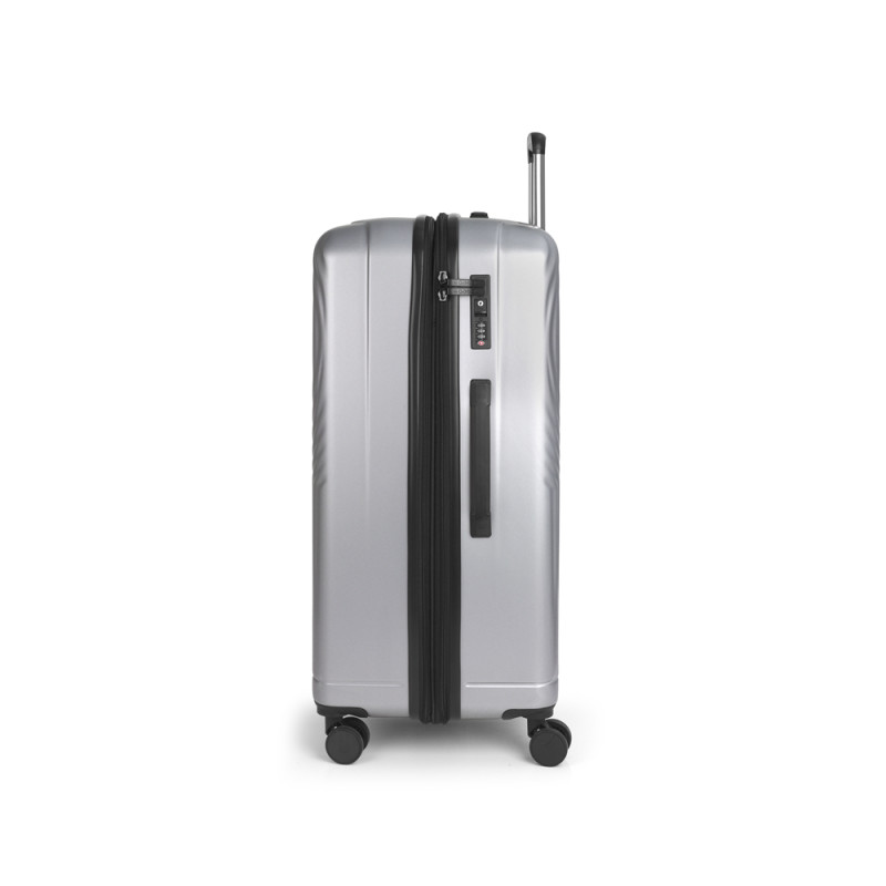 Maleta grande rígida, con expandible y con capacidad hasta 114 L. Fabricadas en Policarbonato. Su interior esta compuesto por un forro de material reciclado, con doble separador y bolsllos. 4 ruedas dobles multidirección. Cremallera de seguridad. Cerradura TSA. 10 años de garantía. Medidas sin y con expandible: Maleta grande: 51x76x33/37 cm - Peso: 4,6 kg - Capacidad: 114/128 L.