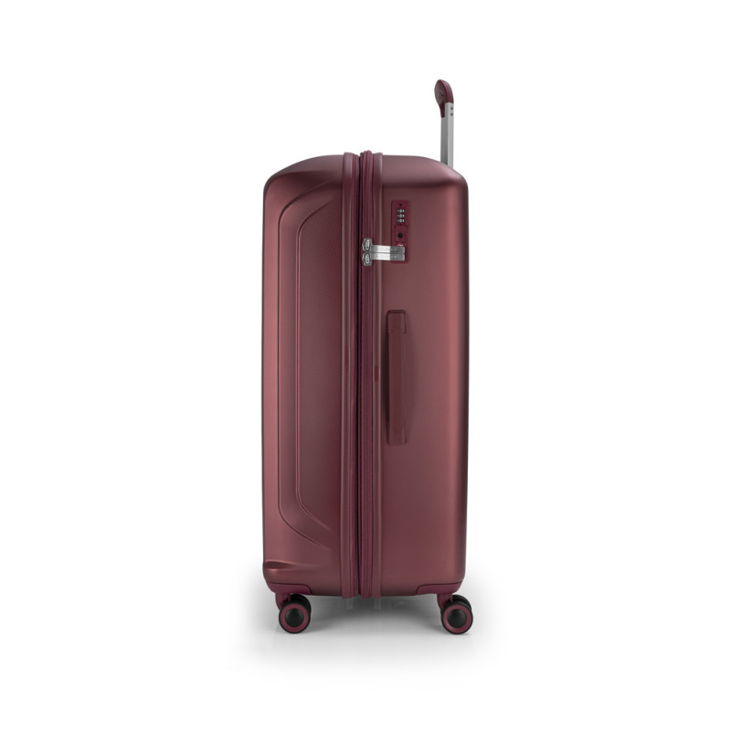 Para viajes largos o grandes aventuras, la maleta grande KAI de Gabol te ofrece espacio, resistencia y elegancia. Fabricada en Policarbonato, soporta los impactos del viaje sin perder estilo. Su interior está completamente forrado con material reciclado RPET y equipado con prácticos separadores y cintas de sujeción. La cerradura TSA y la cremallera de seguridad mantienen todo protegido. Sus 4 ruedas dobles multidireccionales permiten un manejo cómodo y suave. Maleta Grande: 52 x 76 x 32/35 cm | Capacidad: 112,6/123,1L | Peso: 4,8 kg.
