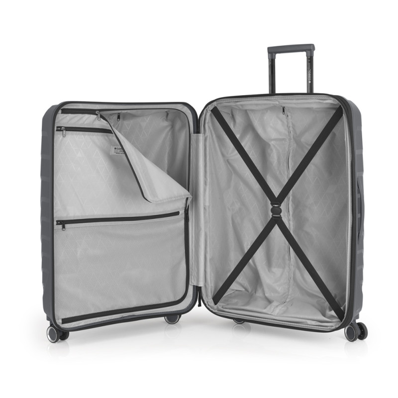 Para viajes largos o grandes aventuras, la maleta grande SOHO de Gabol te ofrece espacio, resistencia y elegancia. Fabricada en Polipropileno, soporta los impactos del viaje sin perder estilo. Su interior está completamente forrado con material reciclado RPET y equipado con prácticos separadores y cintas de sujeción. La cerradura TSA y la cremallera de seguridad mantienen todo protegido. Sus 4 ruedas dobles multidireccionales permiten un manejo cómodo y suave. Medidas: 53 x 77 x 22 cm | Capacidad: 110,6 /121,3L | Peso: 4,5 kg.