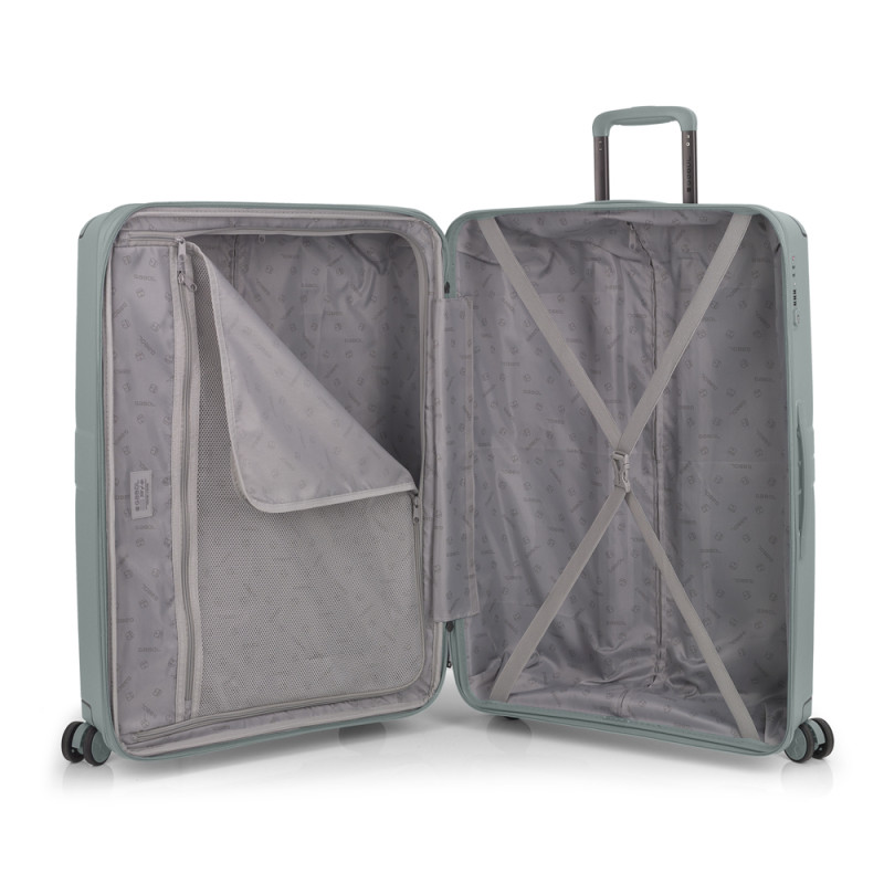 Maleta grande expandible en todos los tamaños. Fabricadas en polipropileno. Su interior esta compuesto por un forro de material reciclado, con un separador y un bolsillo. Cuenta con 4 ruedas dobles multidirección y cerradura TSA. Medidas sin y con expandible: Maleta grande: 51x76x30/33 cm - Peso: 4,4 kg - Capacidad: 105,3/115,8 L.