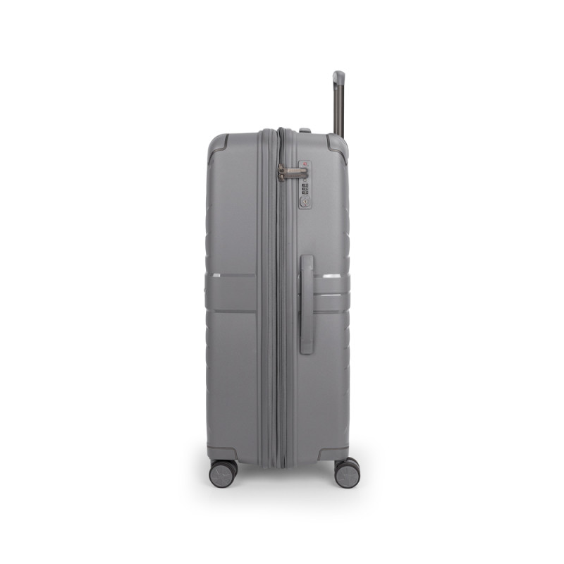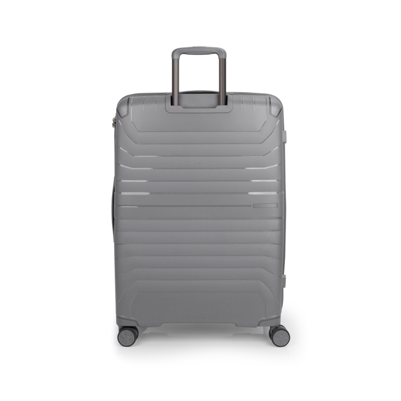 Maleta grande expandible en todos los tamaños. Fabricadas en polipropileno. Su interior esta compuesto por un forro de material reciclado, con un separador y un bolsillo. Cuenta con 4 ruedas dobles multidirección y cerradura TSA. Medidas sin y con expandible: Maleta grande: 51x76x30/33 cm - Peso: 4,4 kg - Capacidad: 105,3/115,8 L.