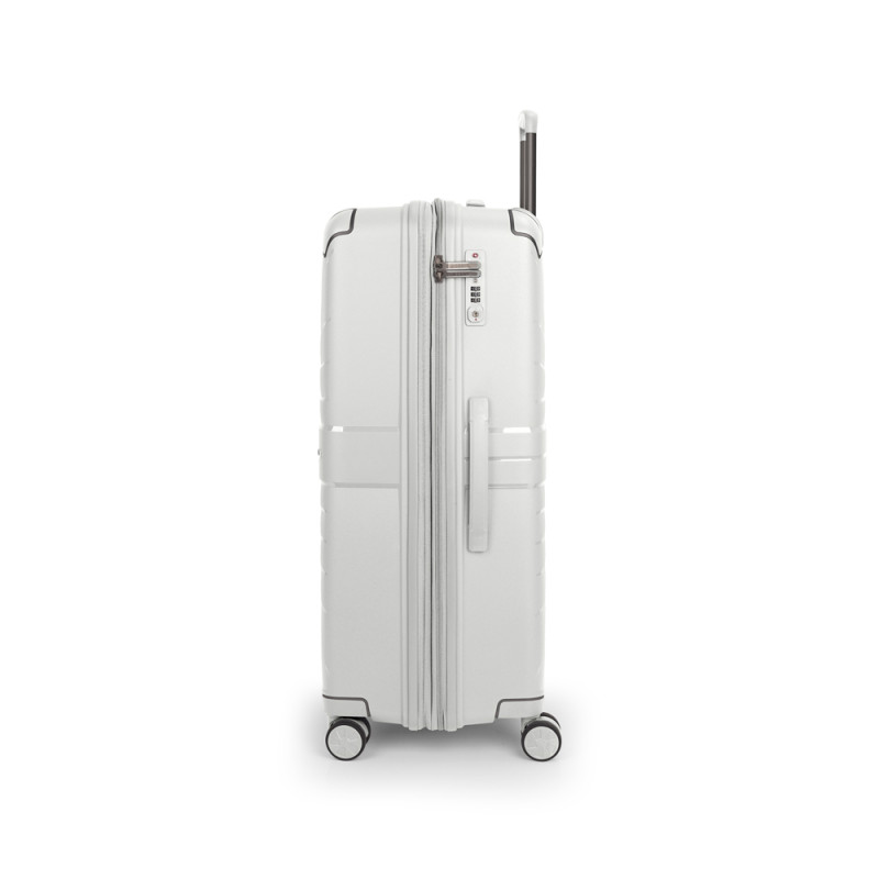 Maleta grande expandible en todos los tamaños. Fabricadas en polipropileno. Su interior esta compuesto por un forro de material reciclado, con un separador y un bolsillo. Cuenta con 4 ruedas dobles multidirección y cerradura TSA. Medidas sin y con expandible: Maleta grande: 51x76x30/33 cm - Peso: 4,4 kg - Capacidad: 105,3/115,8 L.