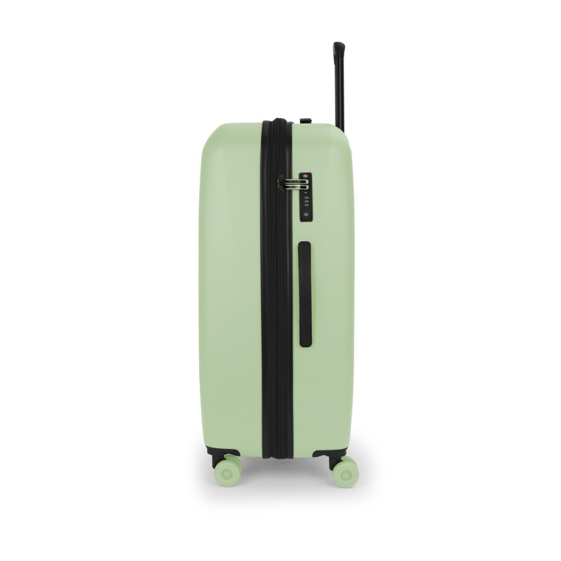 Maleta grande rígida, expandible. Fabricada en polipropileno. Su interior esta compuesto con un forro de material reciclado, un separador y un bolsillo. Cuenta con 4 ruedas dobles silenciosas y cerradura TSA. Medidas sin y con expandible: Maleta grande: 51x75x30/33 cm - Peso: 4,2 kg - Capacidad: 102/112,2 L.