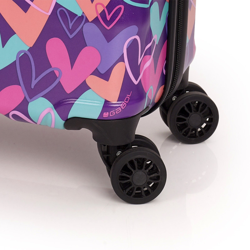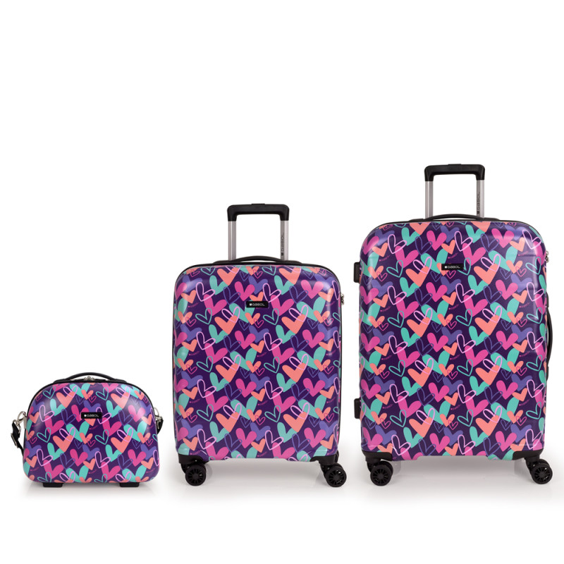 Set de maleta de cabina, mediana y neceser Gabol. Set de una maleta de cabina con 4 ruedas dobles, con capacidad total de 37,6L, una maleta mediana con 4 ruedas dobles con capacidad total de 65,2L y neceser. El material de fabricación es ABS y Policarbonato y su interior está compuesto por un forro de alta calidad con bolsillos. Tiene dos tamaños diferentes para tus necesidades de viaje, maleta de cabina apta como equipaje de mano. Incluye cerradura TSA. El neceser incluye bandolera y acople para la maleta que facilita su transporte. Medidas Maleta Cabina: 40x55x20 cm Medidas Maleta Mediana: 46x66x25 cm Medida Neceser: 35x29x17 cm