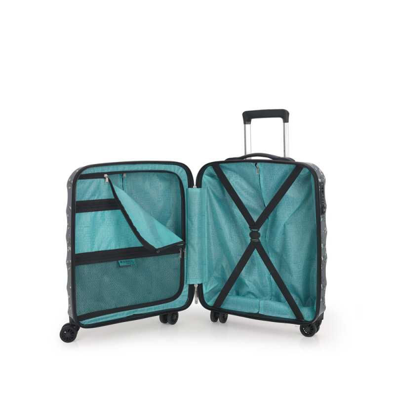 Set de maleta cabina y mediana Gabol. Set de una maleta de cabina con 4 ruedas dobles, con capacidad total de 37,6L, y una maleta mediana con 4 ruedas dobles con capacidad total de 65,2L. El material de fabricación es ABS y Policarbonato y su interior está compuesto por un forro de alta calidad con bolsillos. Tiene dos tamaños diferentes para tus necesidades de viaje, maleta de cabina apta como equipaje de mano. Incluye cerradura TSA. Medidas Maleta Cabina: 40x55x20 cm Medidas Maleta Mediana: 46x66x25 cm
