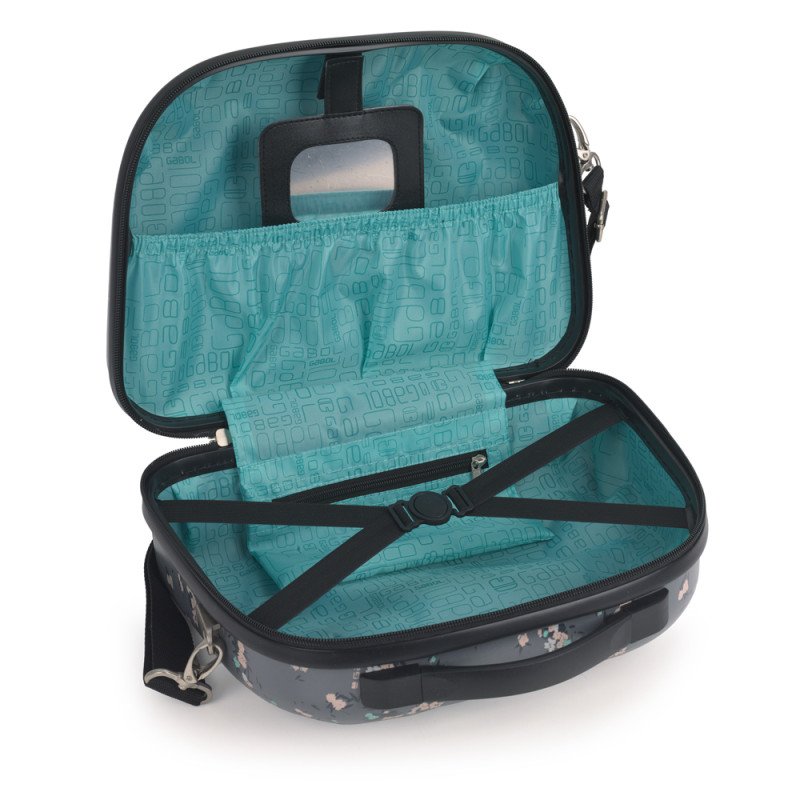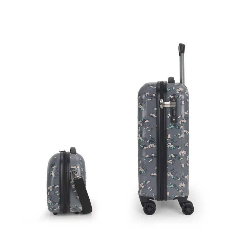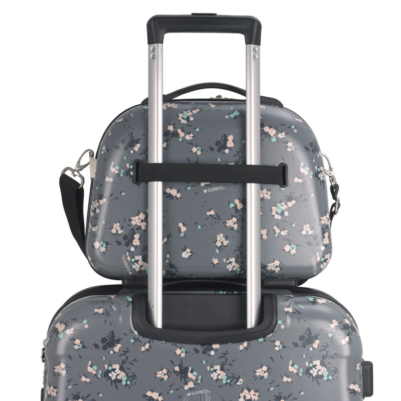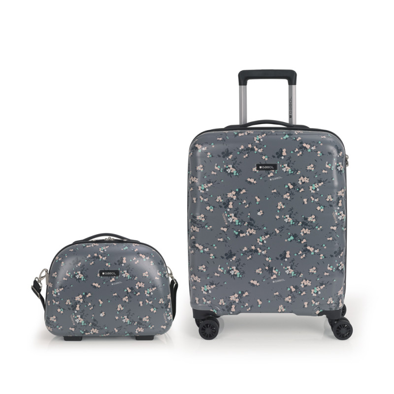 Set de maleta de cabina y neceser Gabol. Set de una maleta de cabina con 4 ruedas dobles, con capacidad total de 37,6L y neceser de 14L. El material de fabricación es ABS y Policarbonato y su interior está compuesto por un forro de alta calidad con bolsillos. Tiene dos tamaños diferentes para tus necesidades de viaje, maleta de cabina apta como equipaje de mano. Incluye cerradura TSA. El neceser incluye bandolera y acople para la maleta que facilita su transporte. Medidas Maleta Cabina: 40x55x20 cm Medida Neceser: 35x29x17 cm