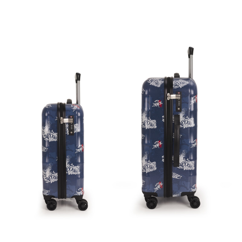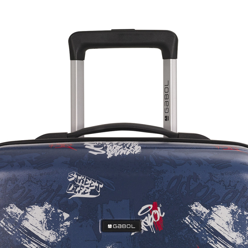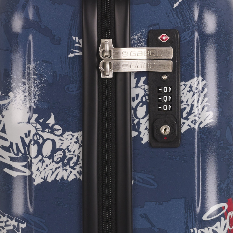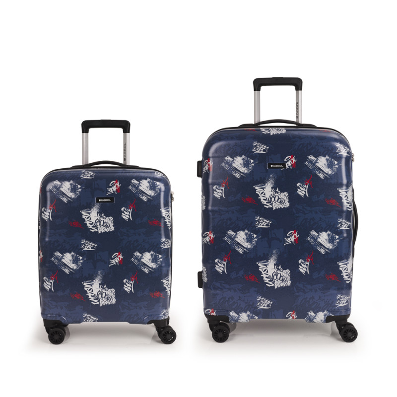 Set de maleta cabina y mediana Gabol. Set de una maleta de cabina con 4 ruedas dobles, con capacidad total de 37,6L, y una maleta mediana con 4 ruedas dobles con capacidad total de 65,2L. El material de fabricación es ABS y Policarbonato y su interior está compuesto por un forro de alta calidad con bolsillos. Tiene dos tamaños diferentes para tus necesidades de viaje, maleta de cabina apta como equipaje de mano. Incluye cerradura TSA. Medidas Maleta Cabina: 40x55x20 cm Medidas Maleta Mediana: 46x66x25 cm