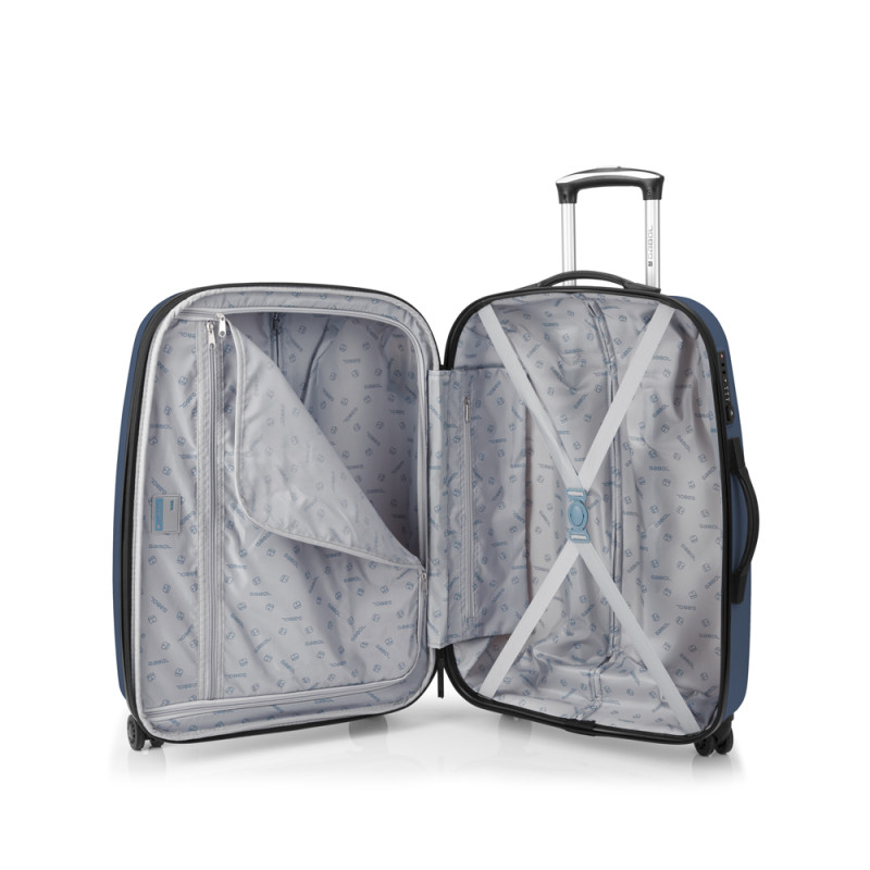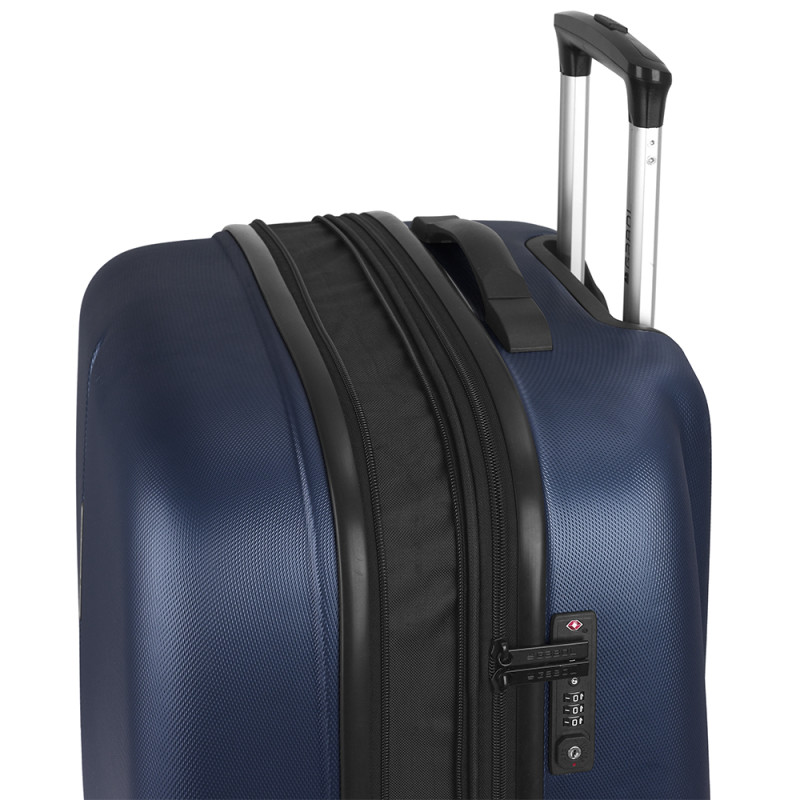 Maleta mediana rígida expandible y 4 ruedas dobles multidirección. Fabricada en ABS. Su interior está compuesto por un forro de alta calidad con separador y bolsillo. Cerradura TSA. Medidas sin y con expandible: Maleta Mediana: 67x48x27/30,5 cm - Peso: 3,8 kg - Capacidad: 70/79 L.