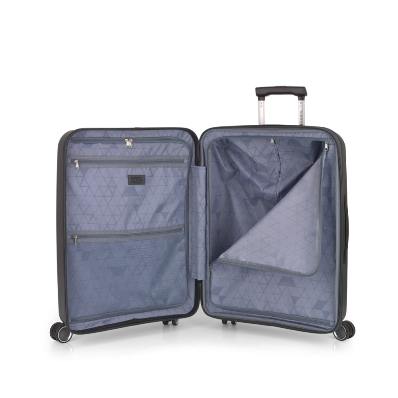 Maleta mediana rígida, expandible y 4 ruedas dobles multidirección. Fabricadas en Polipropileno. Su interior esta compuesto por un forro de material reciclado, con doble separador y bolsllos. Cremallera de seguridad. Cerradura TSA. 10 años de garantía. Medidas sin y con expandible: Maleta Mediana: 45x65x27/30 cm - Peso: 3,4 kg - Capacidad: 70/77,8 L Maleta Mediana: 45x65x27/30 cm
