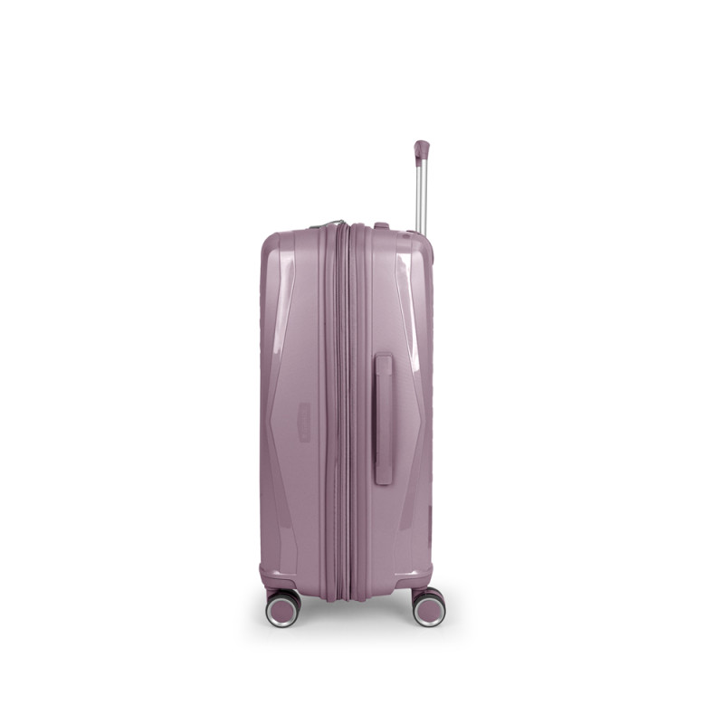 Maleta mediana rígida, expandible y 4 ruedas dobles multidirección. Fabricada en polipropileno. Su interior está compuesto por un forro de material reciclado de alta calidad con doble separador y bolsillo. Cerradura TSA. Medidas sin y con expandible: Maleta Mediana: 44x64,5x28/31 cm - Peso: 3,3 kg - Capacidad: 72,5/80,2 L.