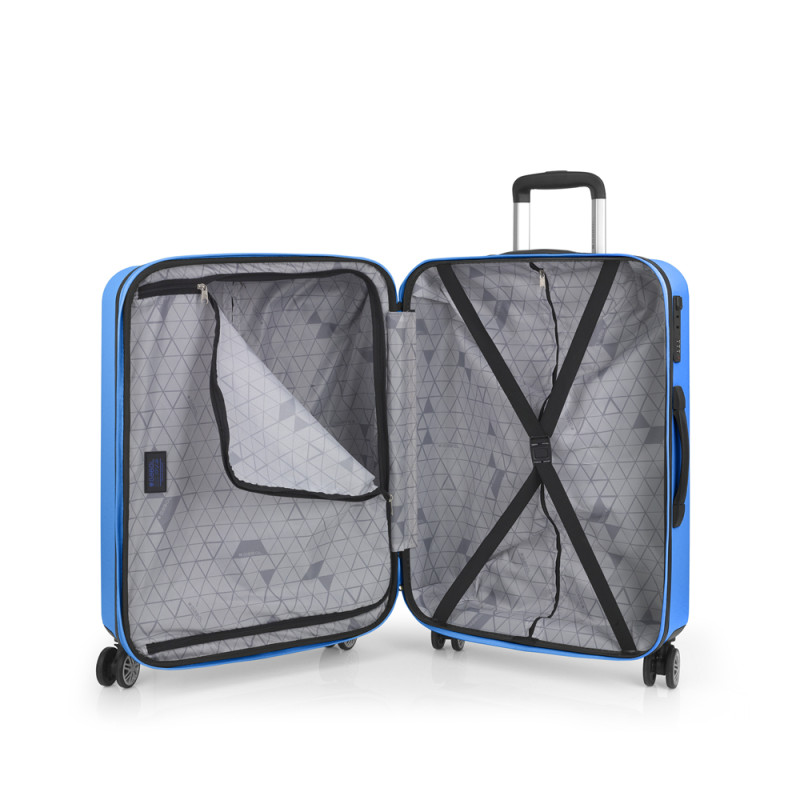 Maleta mediana rígida, con expandible y con capacidad hasta 70,3 L. Fabricadas en ABS. Su interior esta compuesto por un forro, con un separador y un bolsillo. Cuentan con 4 ruedas dobles multidirección. Cerradura de combinación. Medidas sin y con expandible: Maleta mediana: 47x66x27/30 cm - Peso: 3,9 kg - Capacidad: 70,3/78 L.