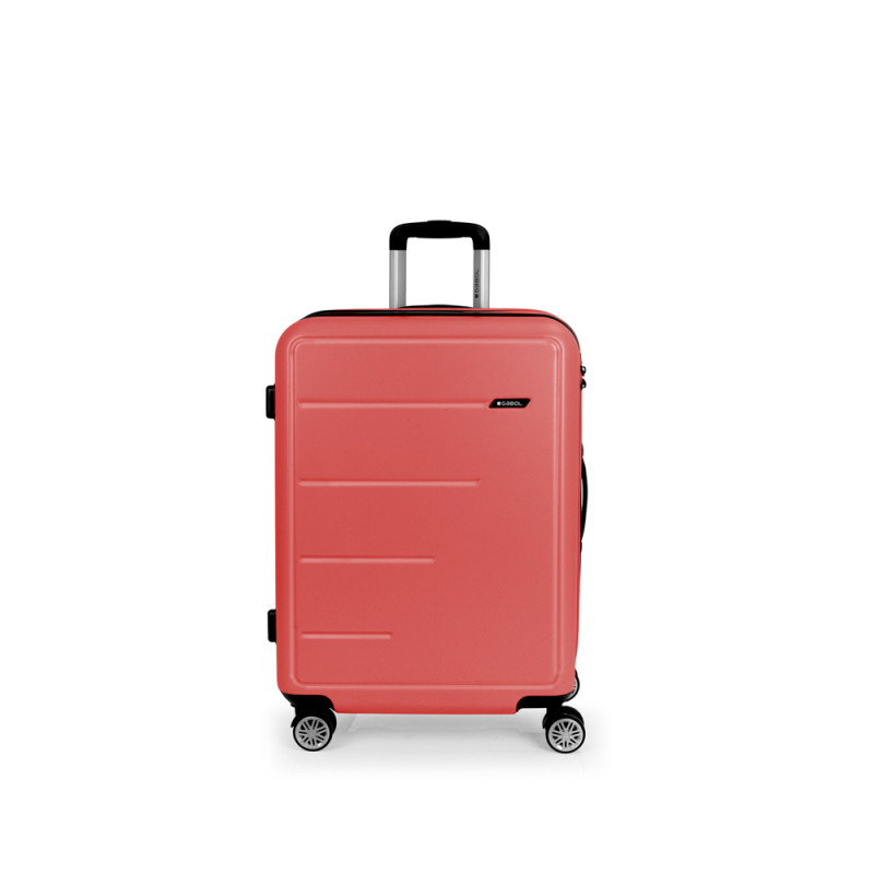 Maleta mediana rígida, con expandible y con capacidad hasta 70,3 L. Fabricadas en ABS. Su interior esta compuesto por un forro, con un separador y un bolsillo. Cuentan con 4 ruedas dobles multidirección. Cerradura de combinación. Medidas sin y con expandible: Maleta mediana: 47x66x27/30 cm - Peso: 3,9 kg - Capacidad: 70,3/78 L.