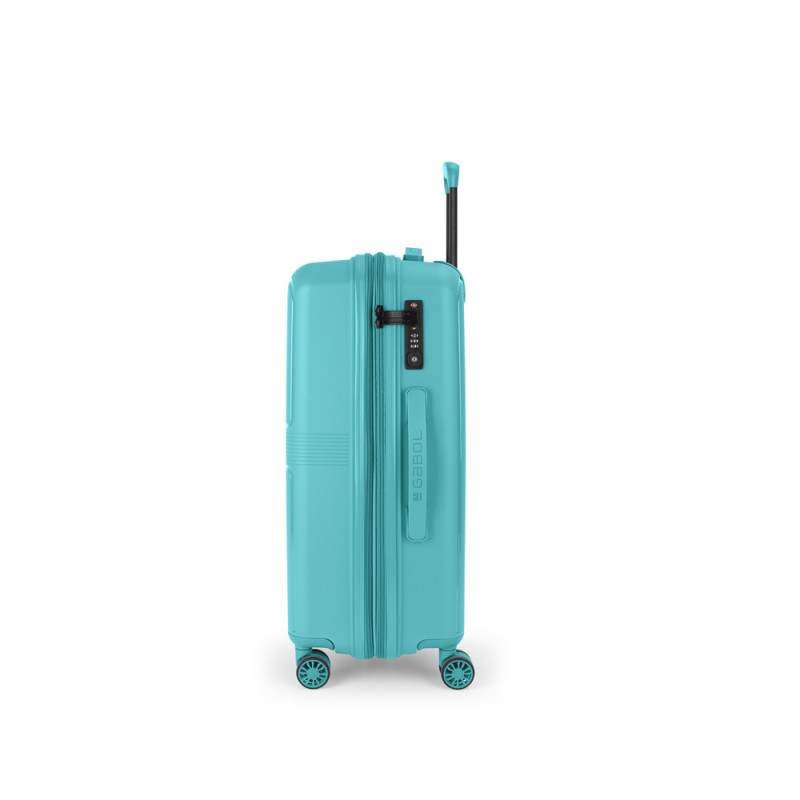 Maleta mediana rígida, con expandible y con capacidad hasta 63,3 L. Fabricadas en polipropileno. Su interior esta compuesto por un forro, con un separador y un bolsillo. 4 ruedas dobles multidirección. Cerradura de combinación. Medidas sin y con expandible: Maleta mediana: 45x64x26/29 cm - Peso: 3,4 kg - Capacidad: 63,3/70,6 L.