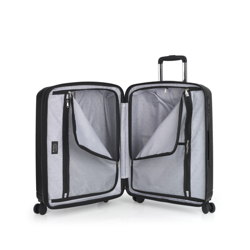 Maleta mediana rígida, con expandible y con capacidad hasta 72,6 L. Fabricadas en Policarbonato. Su interior esta compuesto por un forro de material reciclado, con doble separador y bolsllos. 4 ruedas dobles multidirección. Cremallera de seguridad. Cerradura TSA. 10 años de garantía. Medidas sin y con expandible: Maleta mediana: 45x65x28/31 cm - Peso: 3,6 kg - Capacidad: 72,6/80,4 L.