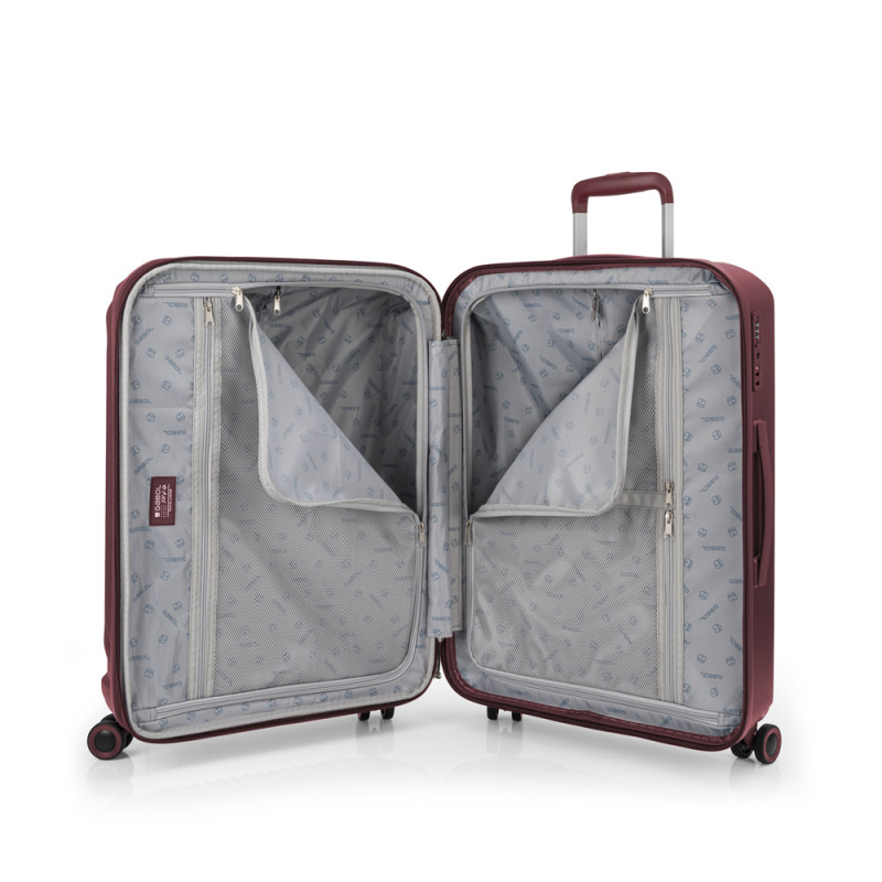 La maleta mediana KAI de Gabol está diseñada para quienes prefieren el estilo al viajar. Fabricada en Policarbonato, ofrece gran resistencia a golpes y arañazos. Equipada con cerradura TSA y cremallera de seguridad, mantiene tus pertenencias protegidas durante todo el trayecto. Su interior está forrado con tejido reciclado RPET, presenta compartimentos organizadores y cintas elásticas para una distribución eficiente del equipaje. Cuenta con 4 ruedas dobles multidireccionales que garantizan un deslizamiento suave y estable. Con unas medidas de 46 x 65 x 27/30 cm, un volumen de 70,9/78,7L y su peso de 3,8 kg. es perfecta para viajes de varios días.