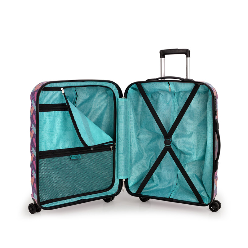 - CUALIDADES: PVC FREE FORRO: ESTAMPADO MATERIAL FORRO: MATERIAL RECICLADO RPET MODELO CERRADURA: CB-60A PVC FREE RESISTENTE AL AGUA SEGURIDAD: CERRADURA COMBINACIÓN SEPARADOR: SENCILLO SISTEMA DE CIERRE: CREMALLERAS NYLON SISTEMA DE RUEDAS: 4 RUEDAS DOBLES