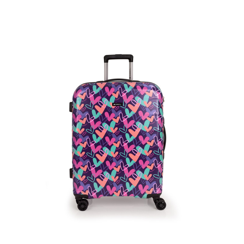 Maleta mediana Gabol. Maleta mediana con 4 ruedas dobles, con capacidad total de 65,2L. El material de fabricación es ABS y policarbonato y su interior está compuesto por un forro de alta calidad con bolsillos. Incluye cerradura TSA. Medidas Maleta Mediana: 46x66x25 cm