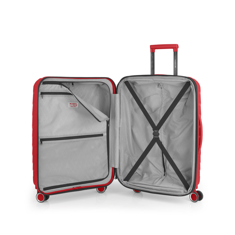La maleta mediana SOHO de Gabol está diseñada para quienes buscan equilibrio entre capacidad y movilidad. Fabricada en Polipropileno, ofrece gran resistencia a golpes y arañazos. Equipada con cerradura TSA y cremallera de seguridad, mantiene tus pertenencias protegidas durante todo el trayecto. Su interior está forrado con tejido reciclado RPET, presenta compartimentos organizadores y cintas elásticas para una distribución eficiente del equipaje. Cuenta con 4 ruedas dobles multidireccionales que garantizan un deslizamiento suave y estable. Con unas medidas de 47x67x27/30 cm, un volumen de 71,2/79,2 L y su peso de 3,4 kg, es perfecta para viajes de varios días.