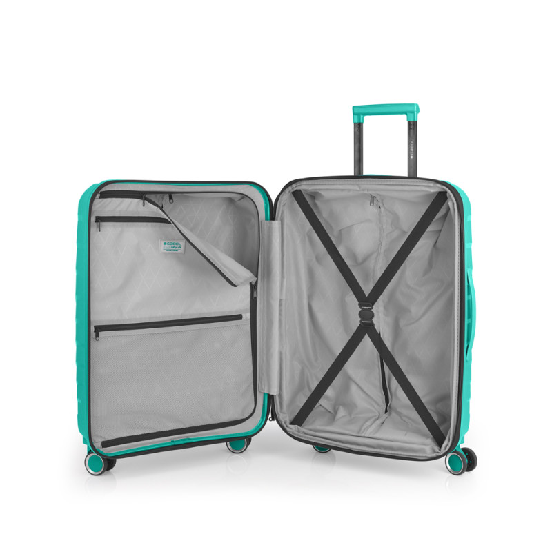 La maleta mediana SOHO de Gabol está diseñada para quienes buscan equilibrio entre capacidad y movilidad. Fabricada en Polipropileno, ofrece gran resistencia a golpes y arañazos. Equipada con cerradura TSA y cremallera de seguridad, mantiene tus pertenencias protegidas durante todo el trayecto. Su interior está forrado con tejido reciclado RPET, presenta compartimentos organizadores y cintas elásticas para una distribución eficiente del equipaje. Cuenta con 4 ruedas dobles multidireccionales que garantizan un deslizamiento suave y estable. Con unas medidas de 47x67x27/30 cm, un volumen de 71,2/79,2 L y su peso de 3,4 kg, es perfecta para viajes de varios días.