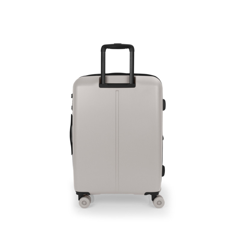 Maleta mediana rígida, expandible. Fabricada en polipropileno. Su interior esta compuesto con un forro de material reciclado, un separador y un bolsillo. Cuenta con 4 ruedas dobles silenciosas y cerradura TSA. Medidas sin y con expandible: Maleta mediana: 44x65x27/30 cm - Peso: 3,5 kg - Capacidad: 69/76,5 L.