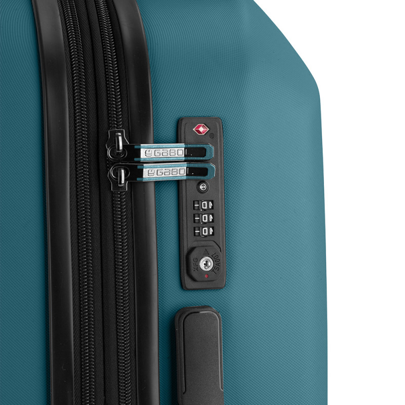 - ASA LATERAL CABINA EXPANDIBLE FORRO: ESTAMPADO GARANTÍA: GARANTÍA 5 AÑOS MATERIAL FORRO: MATERIAL RECICLADO RPET MODELO CERRADURA: CB-60A SEGURIDAD: CERRADURA TSA SEPARADOR: SENCILLO SISTEMA DE CIERRE: CREMALLERAS NYLON SISTEMA DE RUEDAS: 4 RUEDAS DOBLES