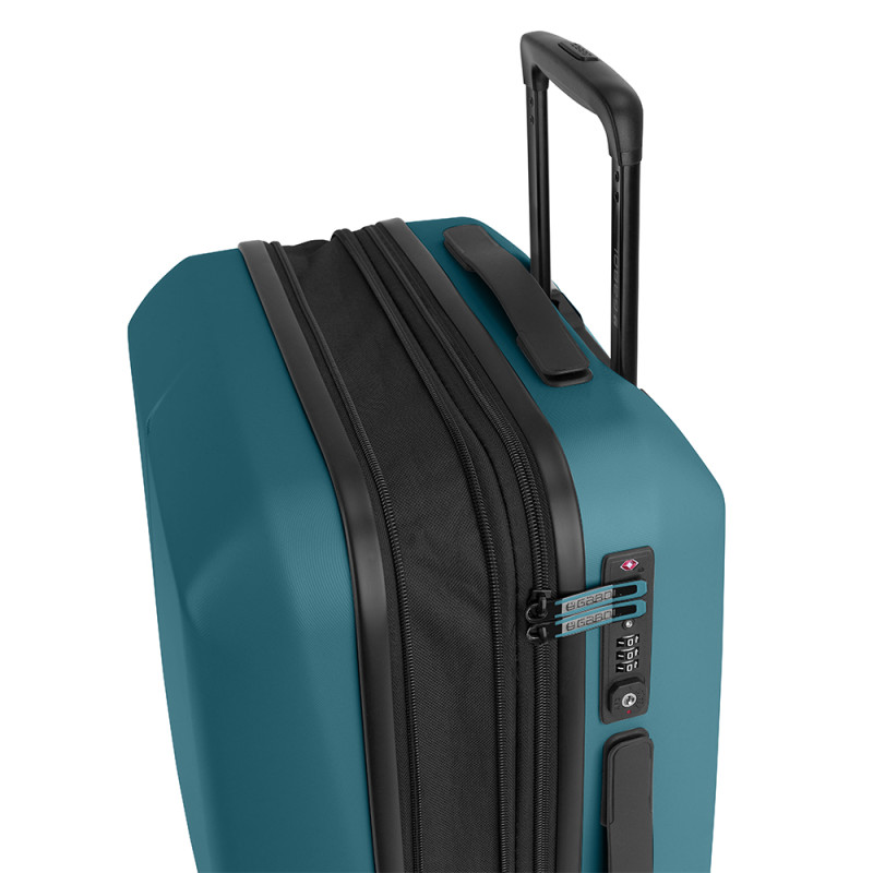 Maleta mediana rígida, expandible. Fabricada en polipropileno. Su interior esta compuesto con un forro de material reciclado, un separador y un bolsillo. Cuenta con 4 ruedas dobles silenciosas y cerradura TSA. Medidas sin y con expandible: Maleta mediana: 44x65x27/30 cm - Peso: 3,5 kg - Capacidad: 69/76,5 L.