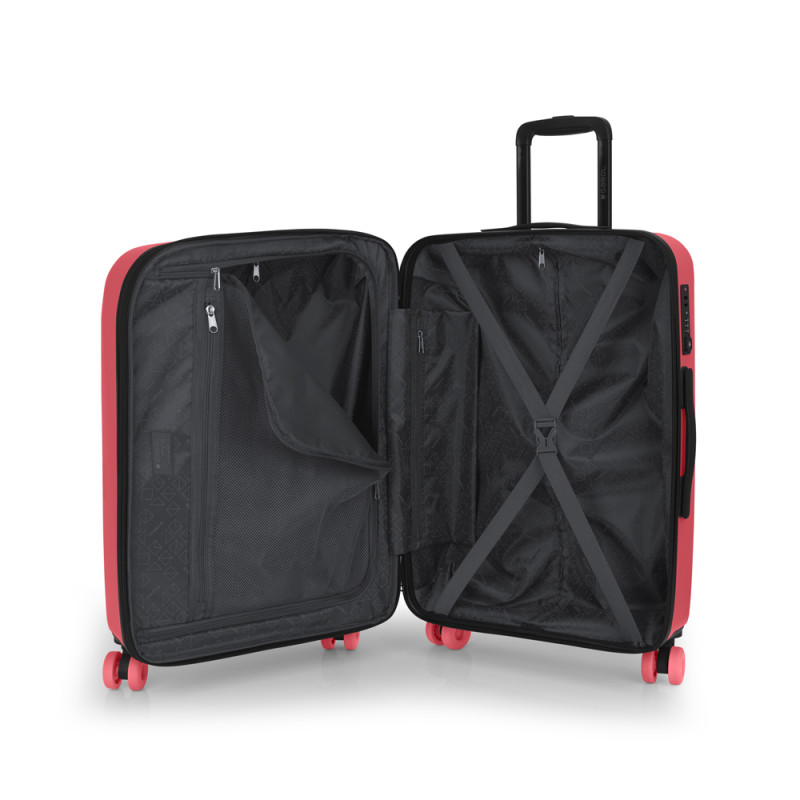 Maleta mediana rígida, expandible. Fabricada en polipropileno. Su interior esta compuesto con un forro de material reciclado, un separador y un bolsillo. Cuenta con 4 ruedas dobles silenciosas y cerradura TSA. Medidas sin y con expandible: Maleta mediana: 44x65x27/30 cm - Peso: 3,5 kg - Capacidad: 69/76,5 L.