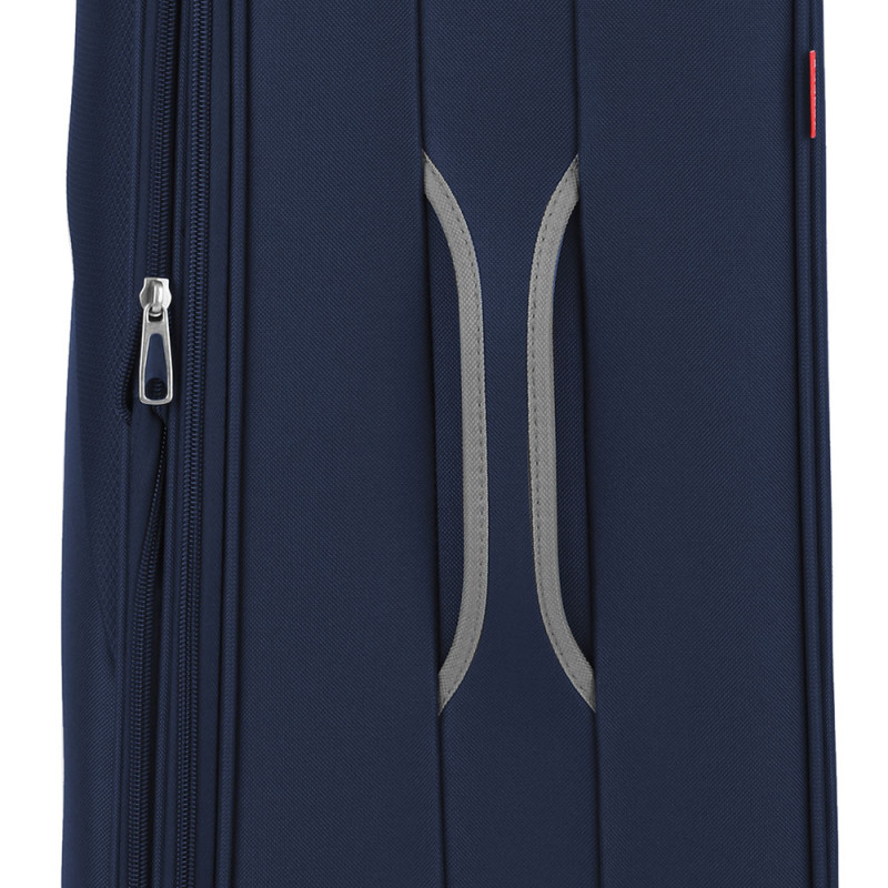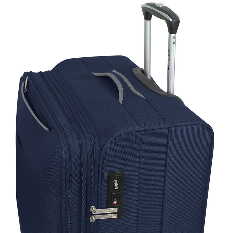 Maleta de tamaño mediana expandible, blanda, con capacidad de hasta 72-78 L y 4 ruedas dobles. El material de fabricación es poliéster y su interior está compuesto por un forro de alta calidad y separador interior. Puede hacerse expandible para una mayor capacidad. Cerradura TSA.