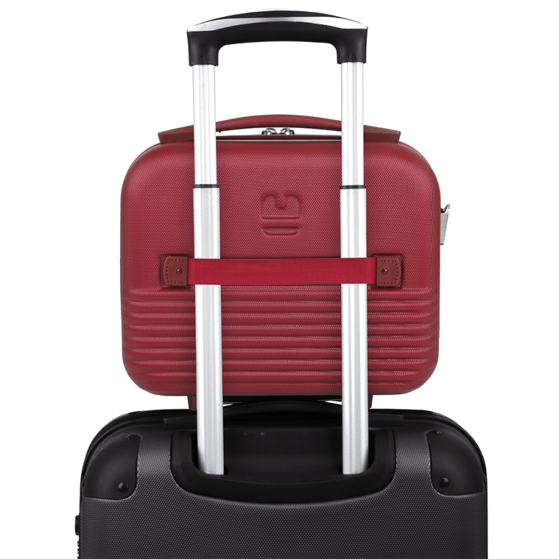 Neceser rígido de ABS con acople a maleta y correa. Interior forrado con material reciclado RPTE y con clasificador. Medidas sin y con expandible: Neceser: 28x30x18 cm - Peso: 1 Kg - Capacidad: 12 L.