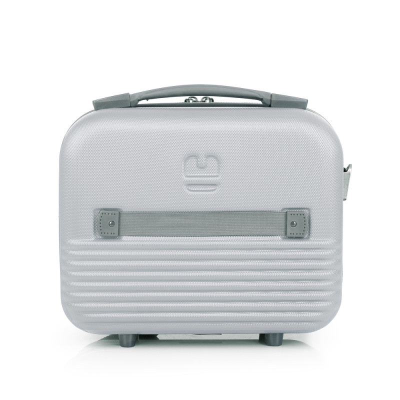 Neceser rígido de ABS con acople a maleta y correa. Interior forrado con material reciclado RPTE y con clasificador. Medidas sin y con expandible: Neceser: 28x30x18 cm - Peso: 1 Kg - Capacidad: 12 L.