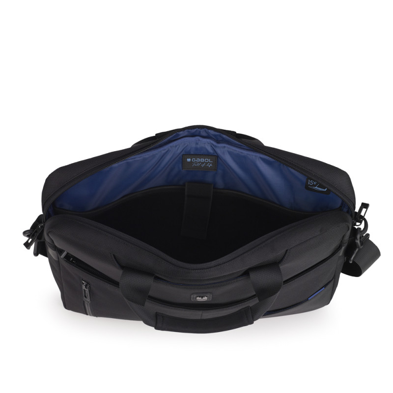 Maletín para portátil de 15,6´´ convertible en mochila. Fabricado con material hecho con plástico reciclado e impermeable. Los cursores de las cremalleras se enganchan entre sí para mayor seguridad. Interior acolchado con compartimento para portátil y organizador.