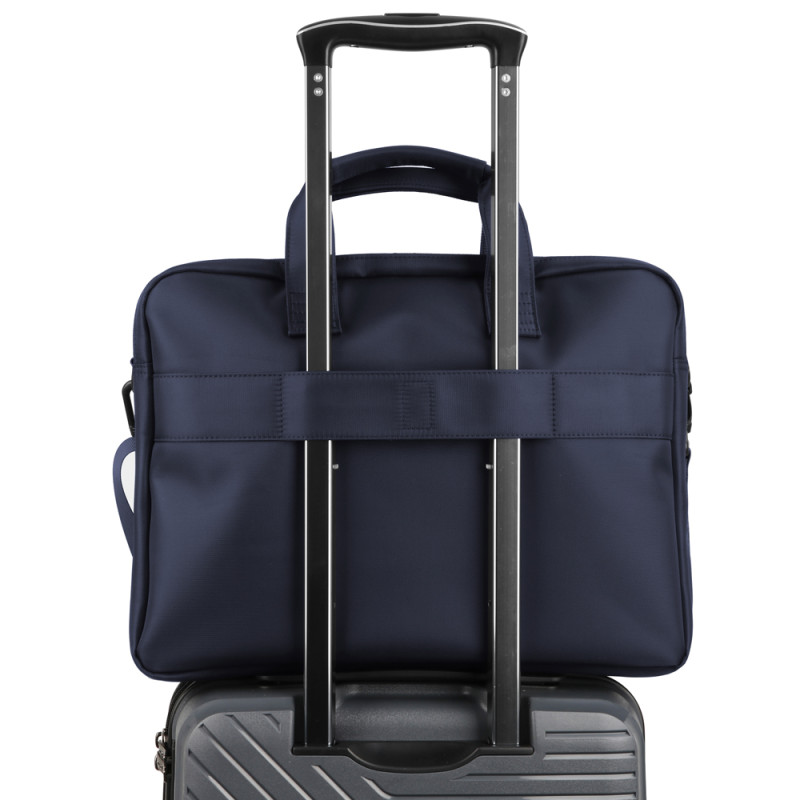Maletín para portátil 15,6'' de poliéster, resistente al agua. El interior del maletín está forrado y acolchado, con organizador para portátil. Lleva cinta para acoplarlo en una maleta. Medidas maletín: 42x31x8 cm. Volumen: 10L.