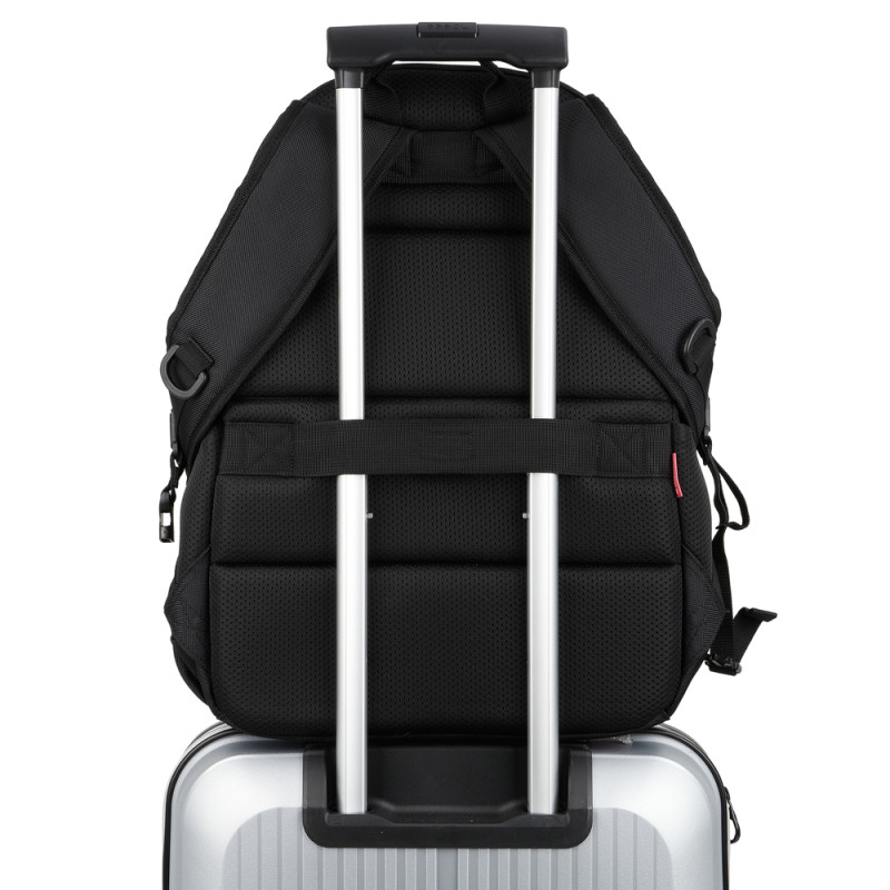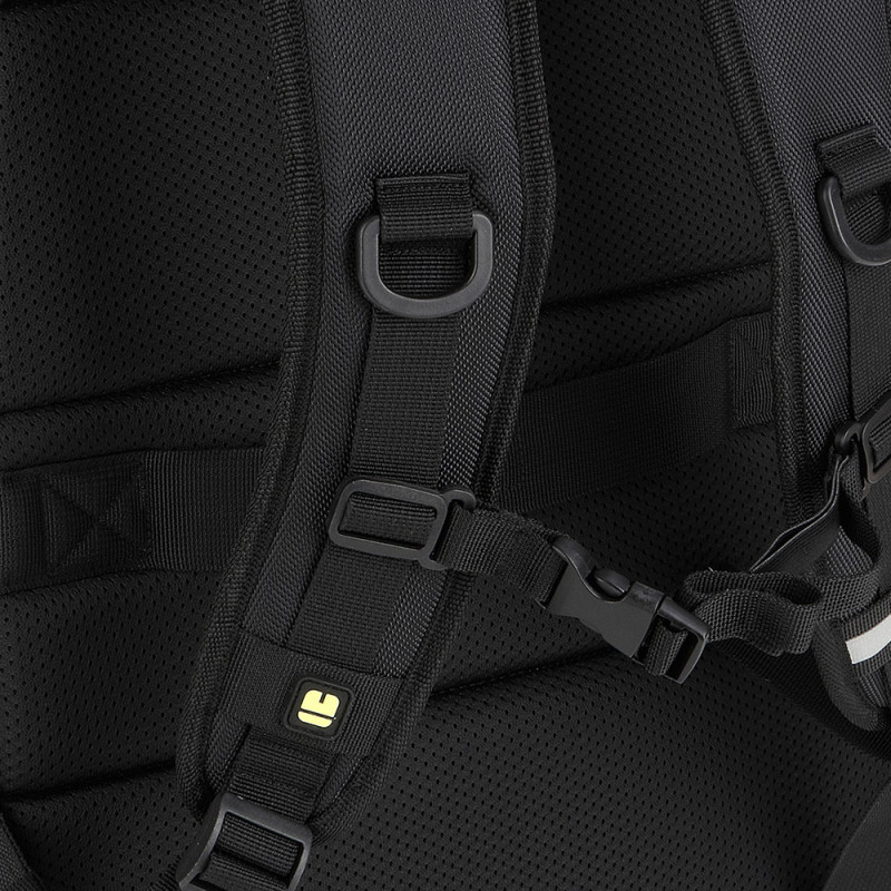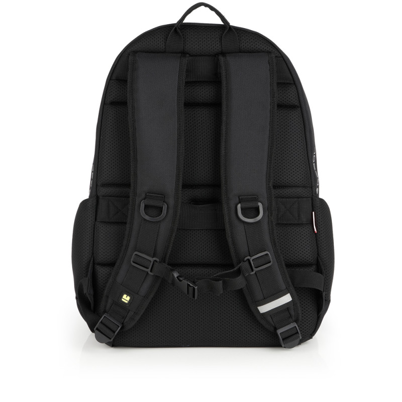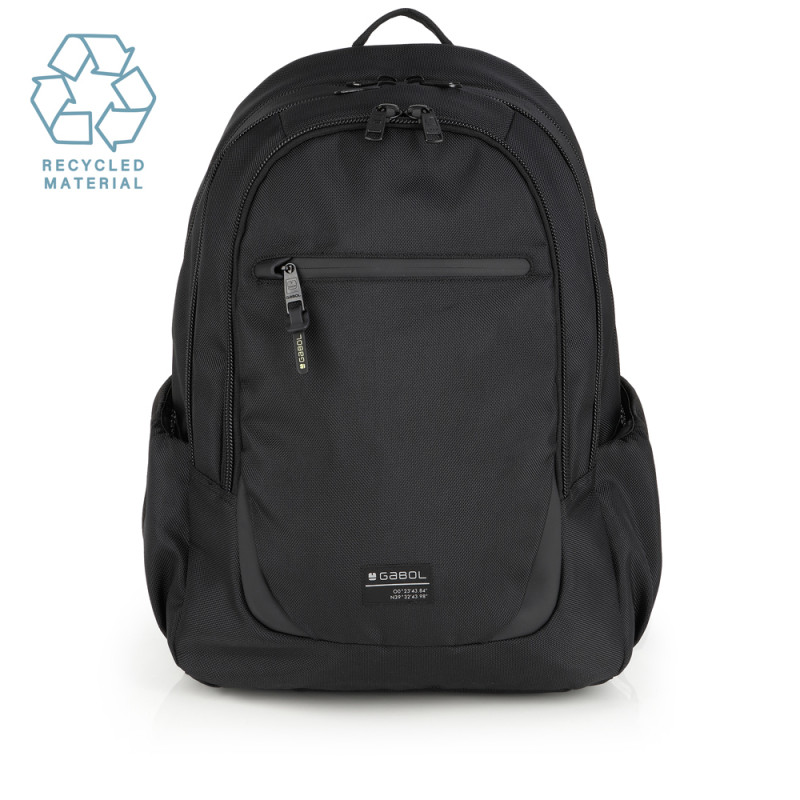 Mochila de dos compartimentos Gabol PANTHER. Fabricada con material reciclado, resistente al agua y libre de PVC, con un tejido de alta densidad y alta calidad. Contiene organizador y cinta de acople a pecho y también a carro. Etiqueta reflectante. Medidas: 33x47x20 cm.