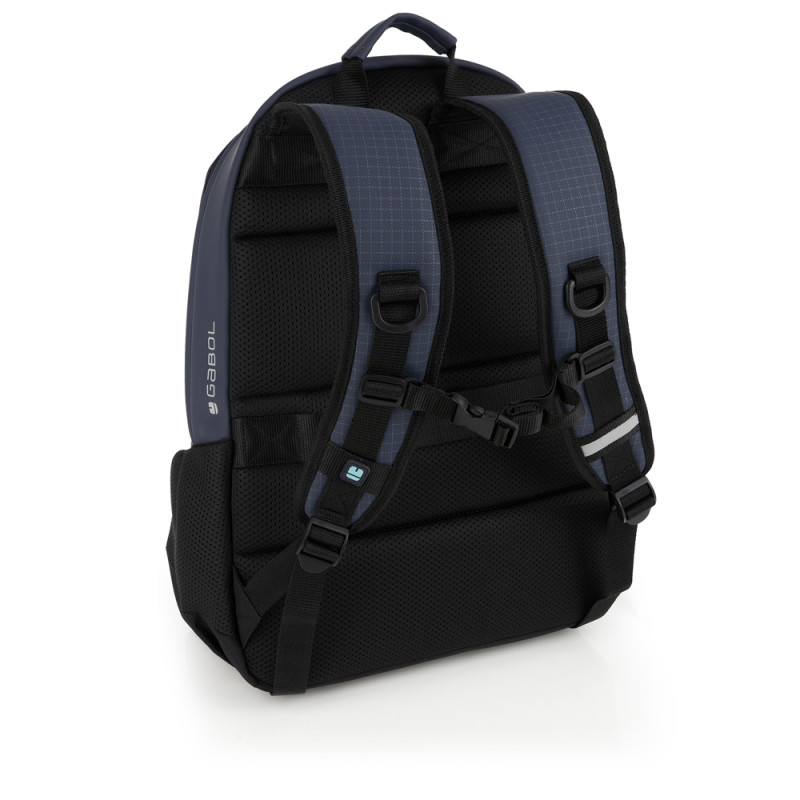 Mochila de dos compartimentos Gabol Lion. Material: piel sintética. Contiene organizador y cinta de acople a pecho y también a carro. Etiqueta reflectante. Medidas: 33x47x20 cm.