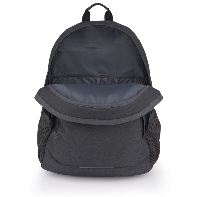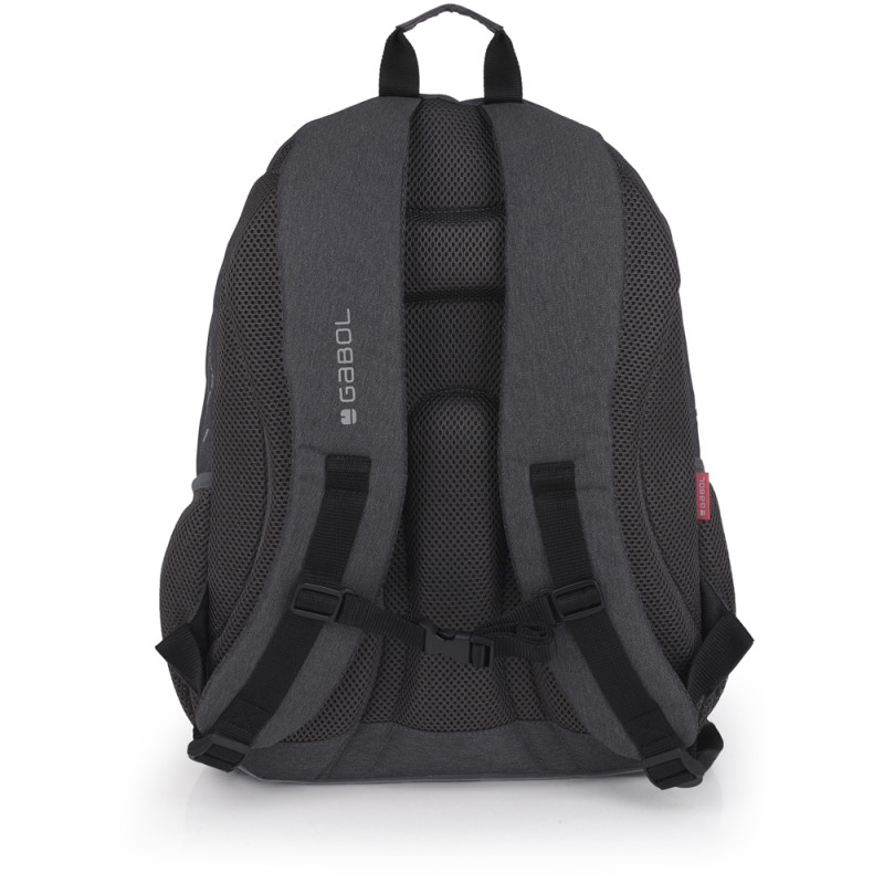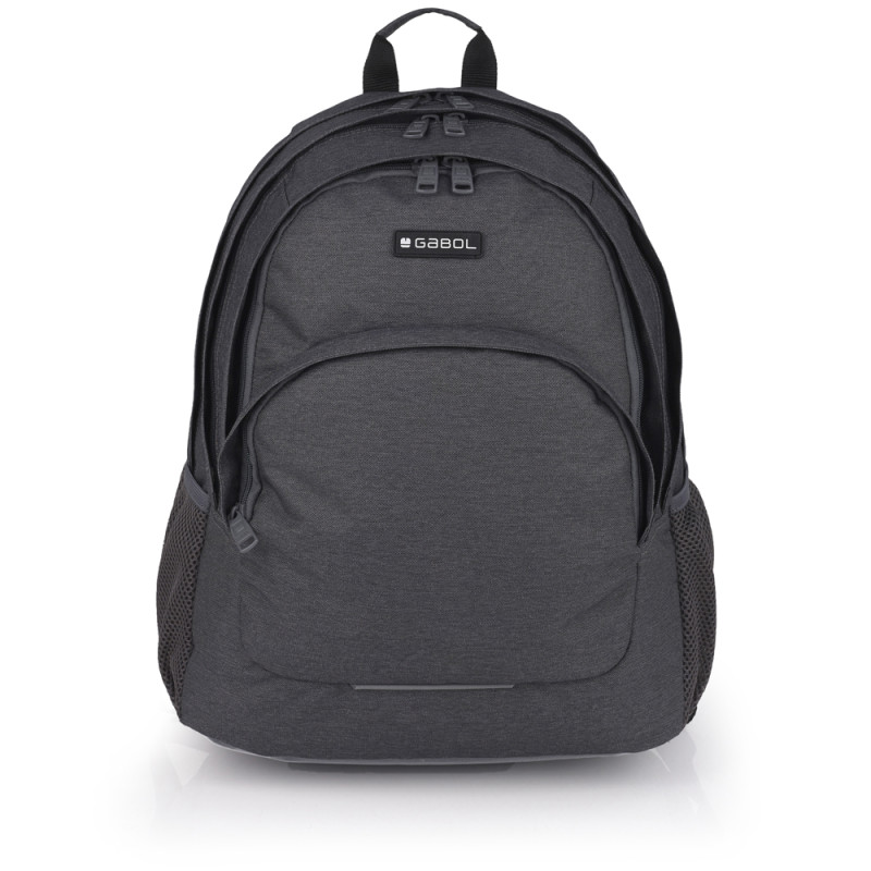 Mochila de tres compartimentos Gabol WOLF. Mochila con 3 compartimentos resistente al agua. Espalda ergonómica de rejilla transpirable. Protección añadida en las cremalleras. Hombreras acolchadas y reforzadas. Incluye identificador y organizador en su interior. Bolsillo en el lateral exterior. Capacidad para portátil 15,6''. Fabricada con material libre de PVC, con un tejido de alta densidad y mayor calidad. Su material resistente al agua, sumado a las cremalleras cubiertas protengen el interior de la lluvia. Medidas: 32x44x18 cm