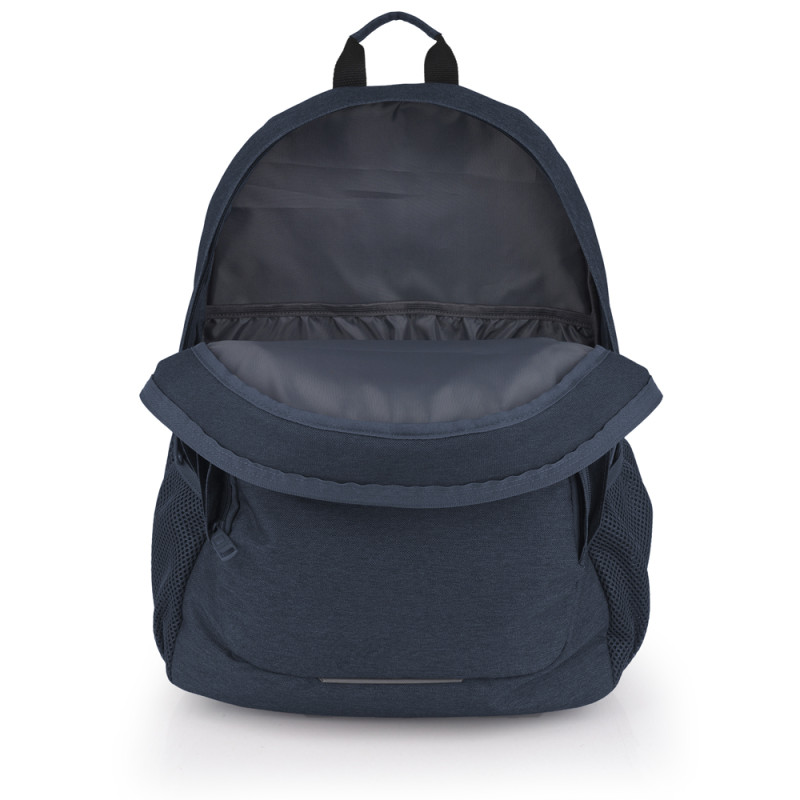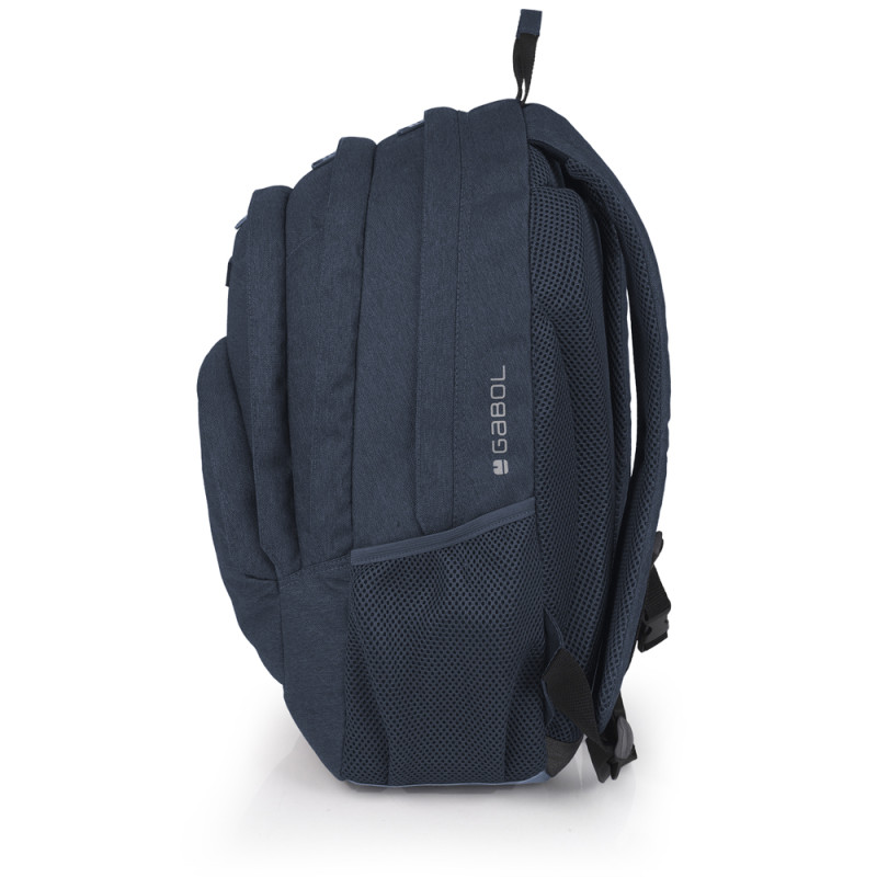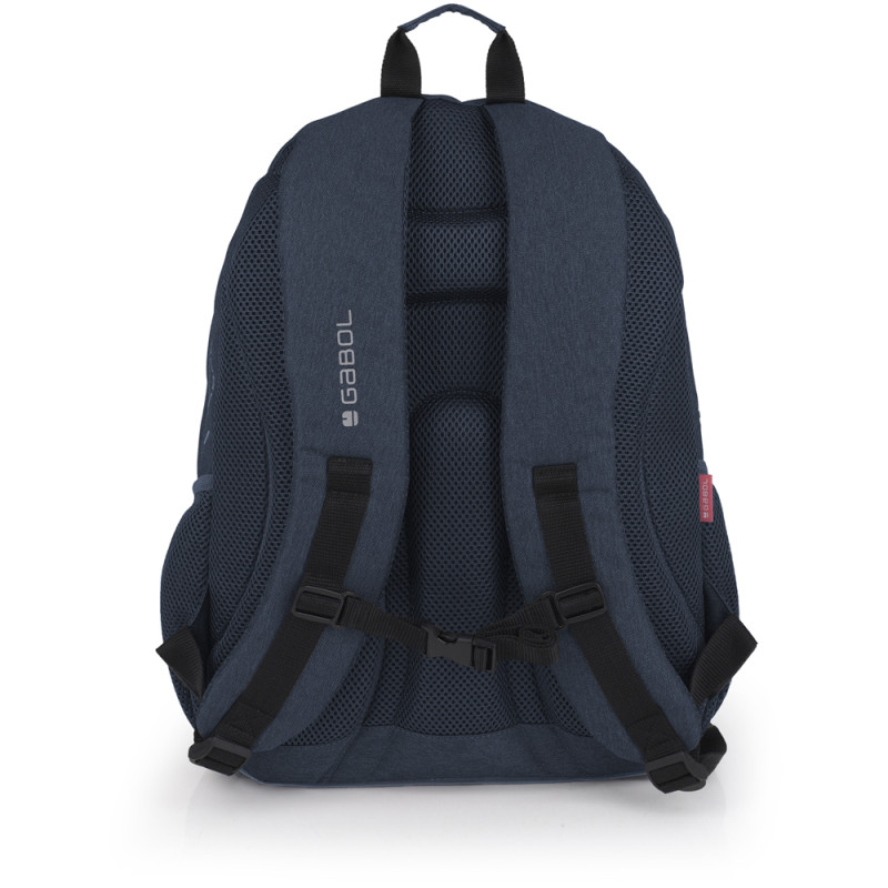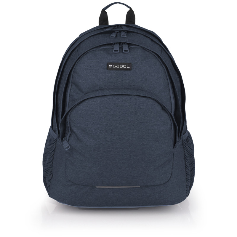 Mochila de tres compartimentos Gabol WOLF. Mochila con 3 compartimentos resistente al agua. Espalda ergonómica de rejilla transpirable. Protección añadida en las cremalleras. Hombreras acolchadas y reforzadas. Incluye identificador y organizador en su interior. Bolsillo en el lateral exterior. Capacidad para portátil 15,6''. Fabricada con material libre de PVC, con un tejido de alta densidad y mayor calidad. Su material resistente al agua, sumado a las cremalleras cubiertas protengen el interior de la lluvia. Medidas: 32x44x18 cm