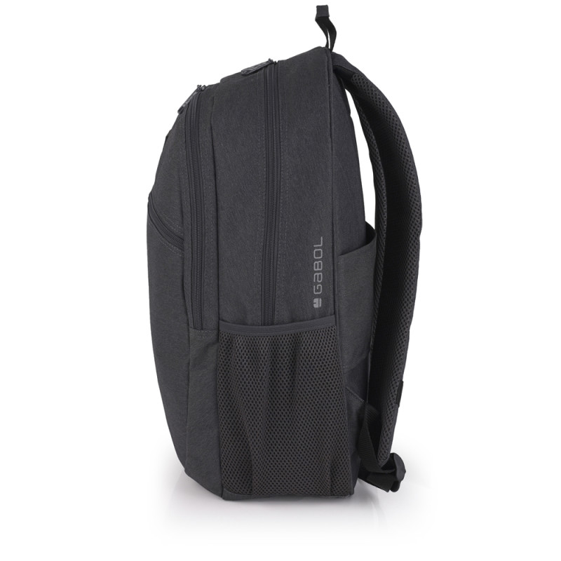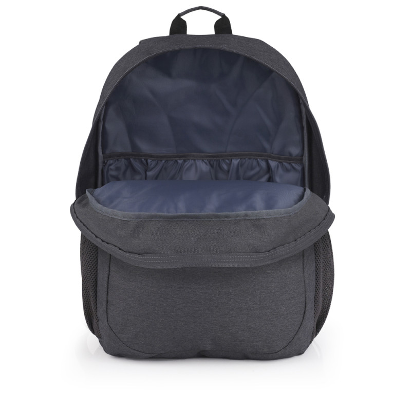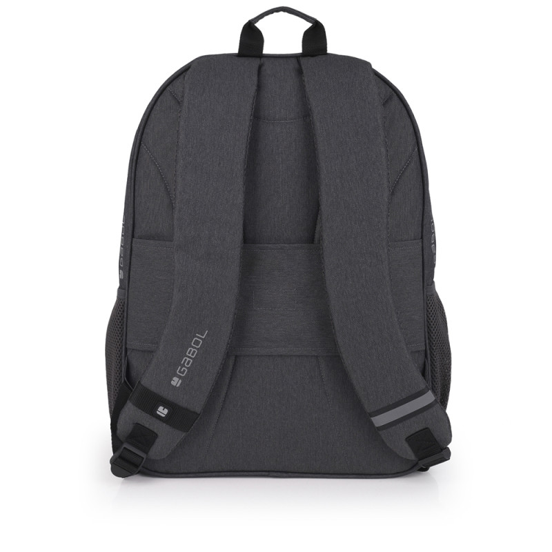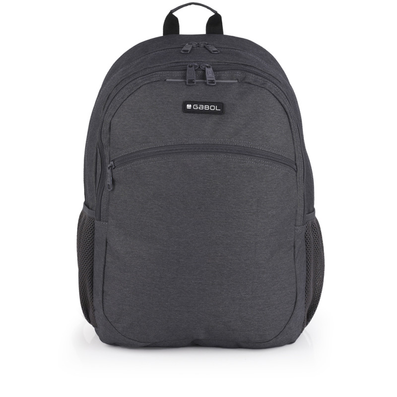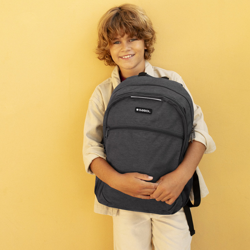 Mochila adaptable a carro Gabol WOLF. Mochila adaptable a carro con 2 compartimentos. Espalda acolchada para servir de amortiguación con el contenido. Protección añadida en las cremalleras. Hombreras acolchadas y reforzadas. Incluye identificador y organizador en su interior. Bolsillo en el lateral exterior. Material resistente al agua. Fabricada con material libre de PVC, con un tejido de alta densidad y mayor calidad. Medidas: 34x46x20 cm