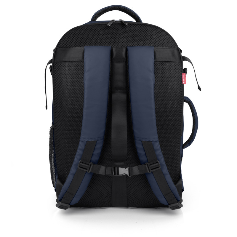 Mochila cabina apta como equipaje de mano, con 2 departamentos, organizador interno y acople a maleta. Fabricado en poliéster resinado y piel sintética, compuesto por un forro de alta calidad y un organizador interno. Medidas: 35x55x18,5/23 cm - Peso: 1 kg - Capacidad: 38,5/44 L