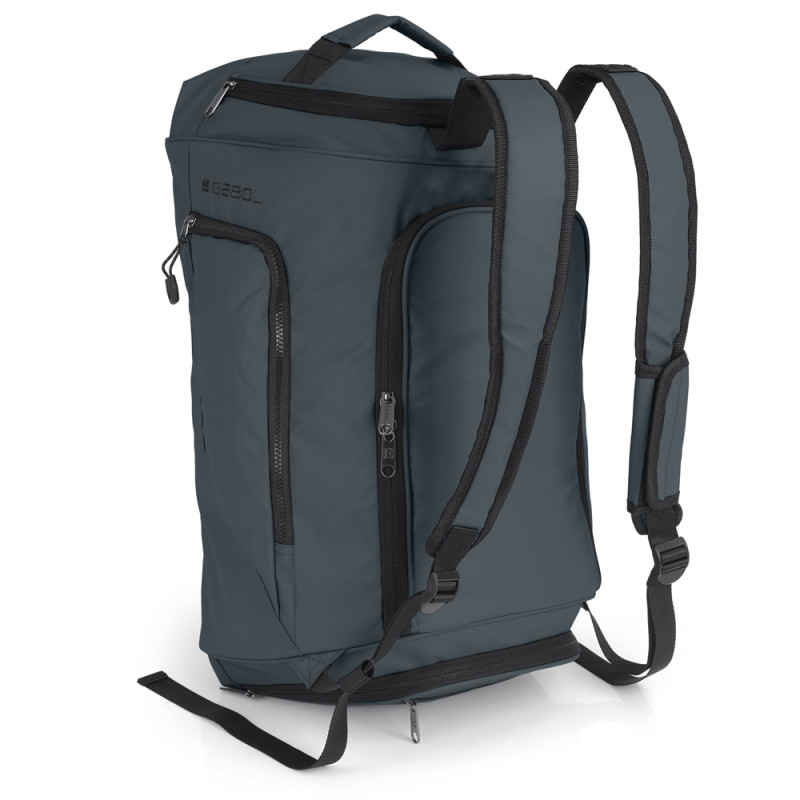 Bolso mochila de viaje con organizador interno y acople a maleta. Fabricado en poliéster resinado y piel sintética, compuesto por un forro de alta calidad y un organizador interno. Medidas: 55x30x28 cm - Peso: 0,77 kg - Capacidad: 41 L