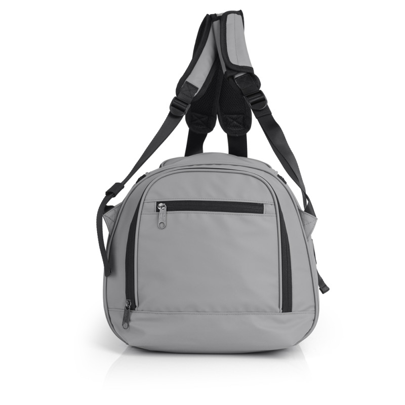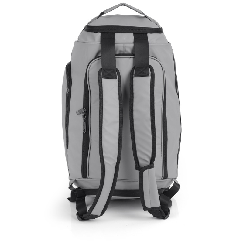 Bolso mochila de viaje con organizador interno y acople a maleta. Fabricado en poliéster resinado y piel sintética, compuesto por un forro de alta calidad y un organizador interno. Medidas: 55x30x28 cm - Peso: 0,77 kg - Capacidad: 41 L
