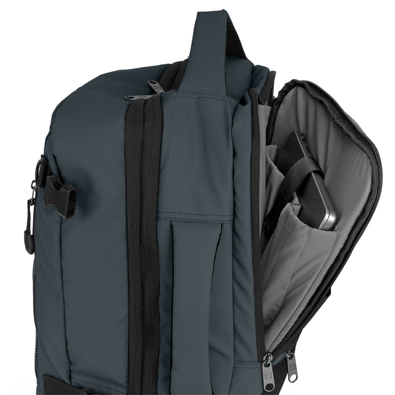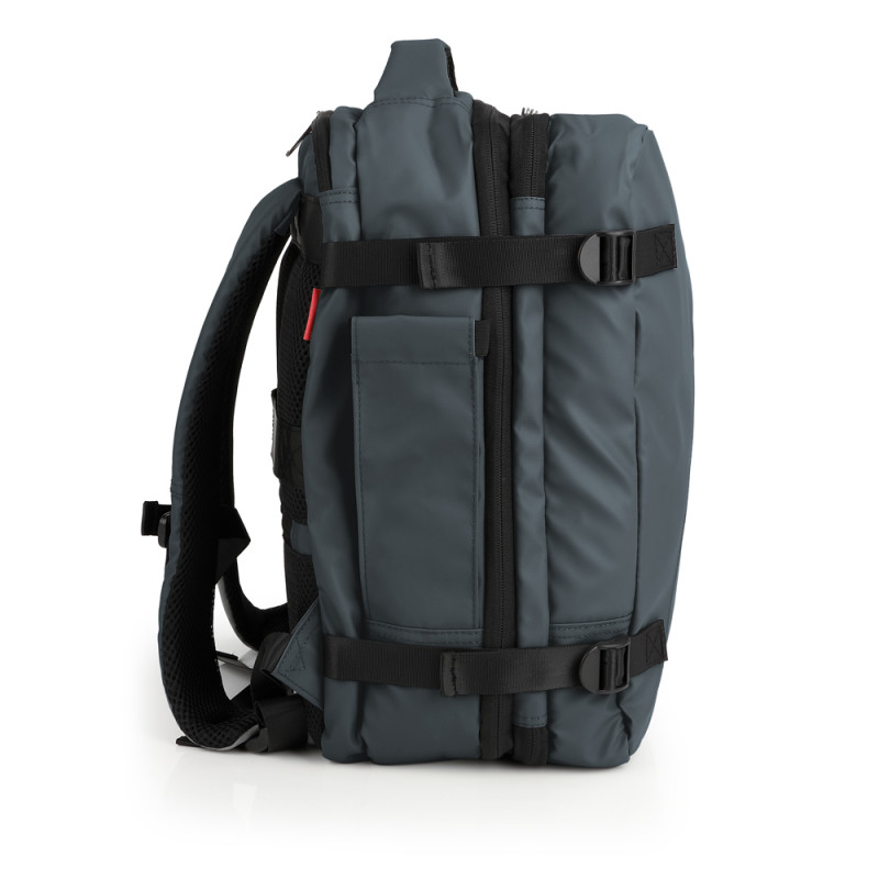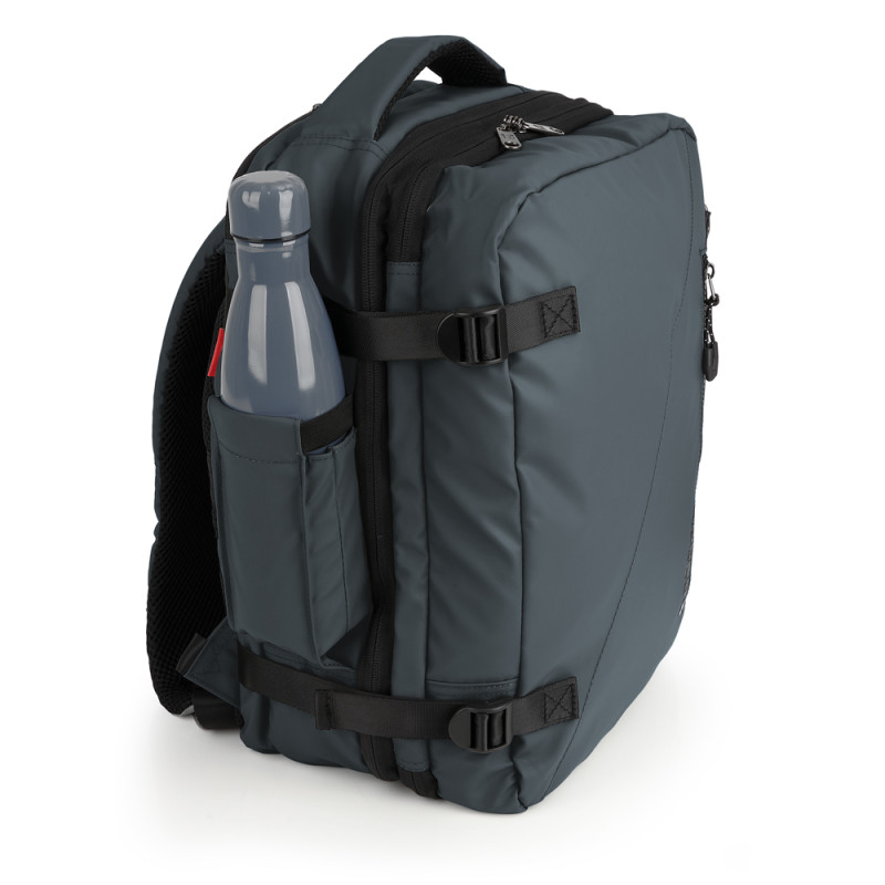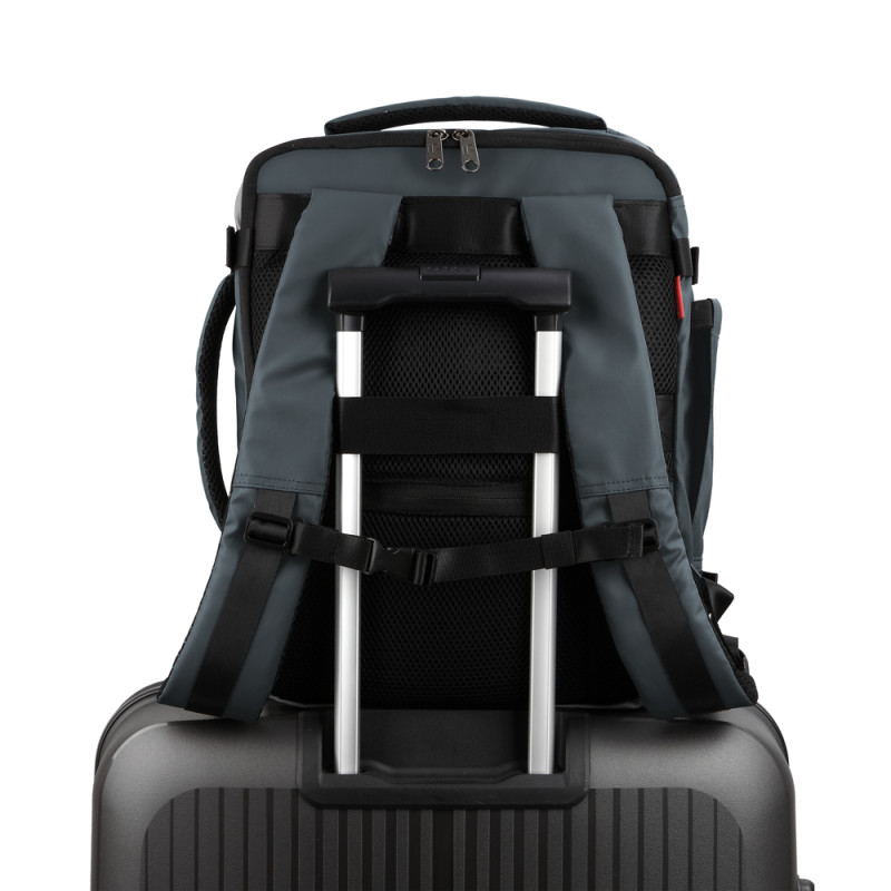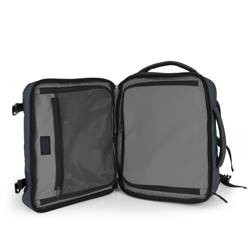 Mochila underseat de dos departamentos, con expandible y con capacidad de 24 L. Válida como equipaje de mano para situar debajo del asiento del avión*. Cuenta dos departaments, uno de ellos para portátil de 15,6''. Se puede usar como mochila o, esconder las hombreras, y usarla como bolso. Cuenta con un cinturón ajustable al pecho y una cinta para acople a maleta. Fabricada en poliéster resinado y piel sintética. Compuesta por un forro de alta calidad y un organizador interno. Medidas: 30 x 40 x 20/24 cm - Peso:1 kg - Capacidad: 24/28,8 L. * Confirme las medidas con su compañía aérea previamente.