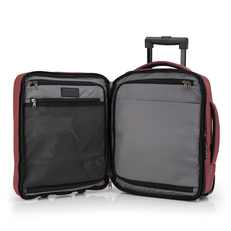 Mochila con ruedas de dos departamentos, con expandible y con capacidad de 24 L. Válida como equipaje de mano para situar debajo del asiento del avión*. Cuenta dos departaments, uno de ellos para portátil de 15,6''. Se puede usar como mochila o como maleta. Fabricada en poliéster resinado y piel sintética. Compuesta por un forro de alta calidad y un organizador interno. Medidas: 30 x 40 x 20/24 cm - Peso:1 kg - Capacidad: 24/28,8 L. Altura con tirador extendido: 101 cm. * Tenga en cuenta que esta maleta underseat no es compatible con todas las aerolíneas. Le recomendamos verificar las medidas permitidas por su compañía aérea antes de viajar.