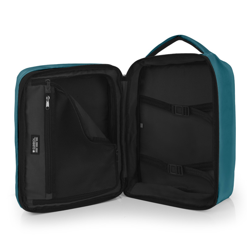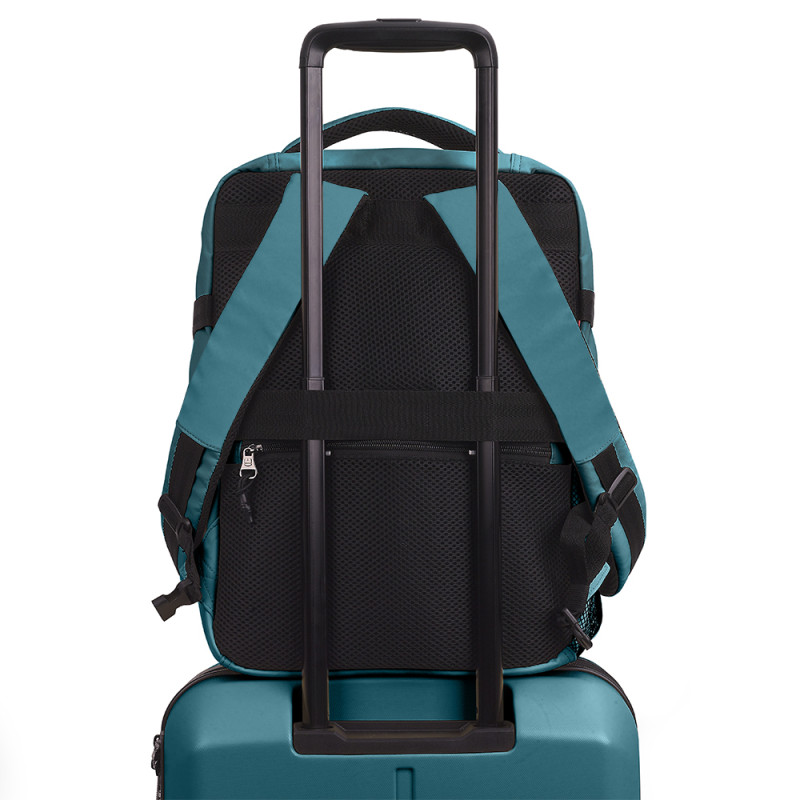 Mochila underseat de dos departamentos, con expandible. Válida como equipaje de mano para situar debajo del asiento del avión*. Cuenta dos departaments, uno de ellos para portátil de 15,6''. Cuenta con un cinturón ajustable al pecho y una cinta para acople a maleta. Fabricada en poliéster y resistente al agua. En su interior se encuentra un bolsillo y unas cintas ajustables. Además cuenta con un bolsillo exterior para la botella. Compuesta por un forro de alta calidad y un organizador interno. Medidas: 30 x 40 x 20/24 cm - Peso:0,64 kg - Capacidad: 24/28,8 L. * Confirme las medidas con su compañía aérea previamente.