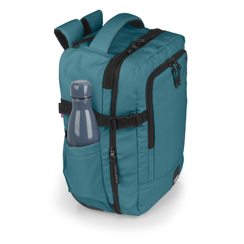 Maleta-mochila underseat de dos departamentos, con expandible y con dos ruedas sencillas. Válida como equipaje de mano para situar debajo del asiento del avión*. Cuenta dos departaments, uno de ellos para portátil de 15,6''. Cuenta con un cinturón ajustable al pecho y una cinta para acople a maleta. Fabricada en poliéster y resistente al agua. En su interior se encuentra un bolsillo y unas cintas ajustables. Compuesta por un forro de alta calidad y un organizador interno. Medidas: 30 x 40 x 20/24 cm - Peso: 1,7 kg - Capacidad: 24/28,8 L. * Confirme las medidas con su compañía aérea previamente.