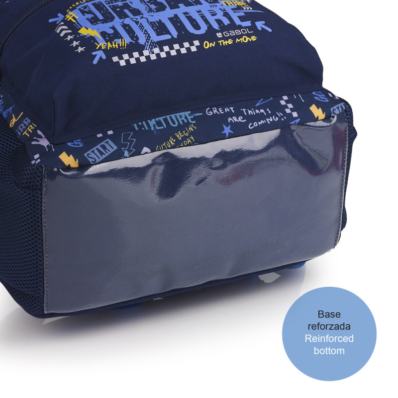 Mochila adaptable a carro con 2 compartimentos, de material impermeable. Su espalda termoformada ofrece, a su vez, comodidad y una protección ideal para amortiguar los objetos del interior. Base acolchada con protector de plástico de refuerzo. Hombreras acolchadas y reforzadas. Incluye identificador y organizador en su interior. Bolsillo en el lateral exterior. Fabricada con material libre de PVC, con un tejido de alta densidad y mayor calidad. Medidas: 32x44x15 cm