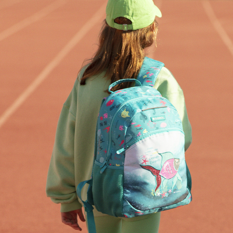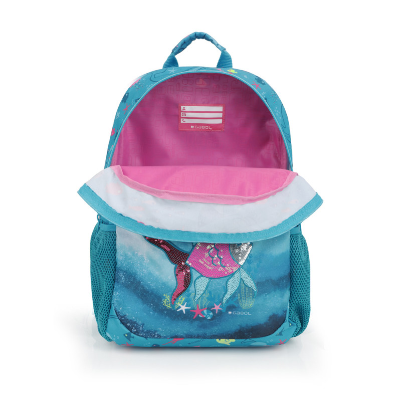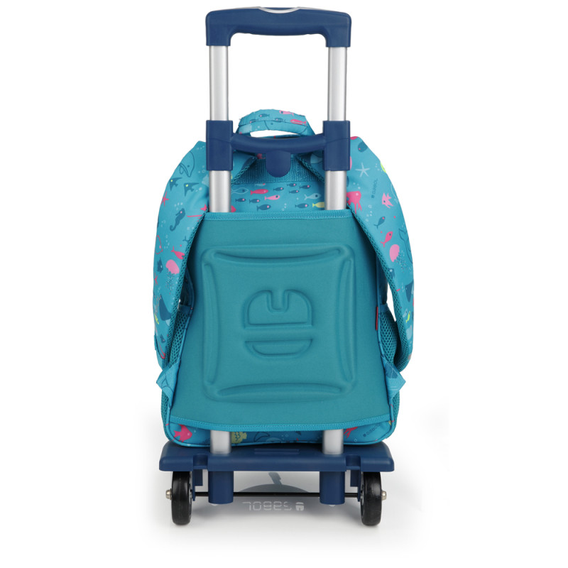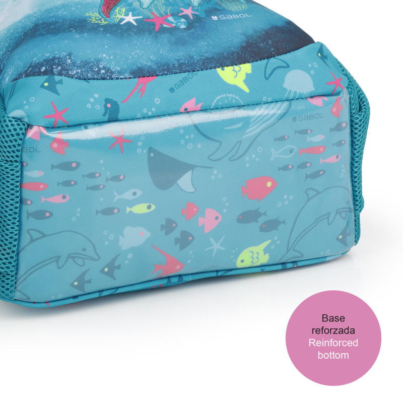 Mochila adaptable a carro Gabol ACQUA. Mochila adaptable a carro con material resistente al agua. Su espalda termoformada ofrece, a su vez, comodidad y una protección ideal para amortiguar los objetos del interior. Base acolchada con protector de plástico de refuerzo. Hombreras acolchadas y reforzadas. Incluye identificador y organizador en su interior. Bolsillo en el lateral exterior. Fabricada con material libre de PVC, con un tejido de alta densidad y mayor calidad. Medidas: 31x41x15 cm