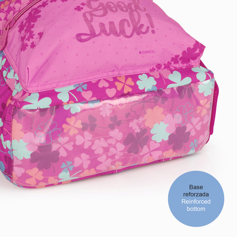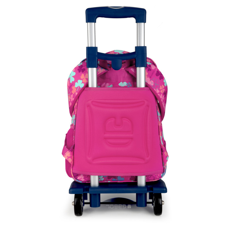 Mochila adaptable a carro Gabol CLOVER. Mochila adaptable a carro con material resistente al agua. Su espalda termoformada ofrece, a su vez, comodidad y una protección ideal para amortiguar los objetos del interior. Base acolchada con protector de plástico de refuerzo. Hombreras acolchadas y reforzadas. Incluye identificador y organizador en su interior. Bolsillo en el lateral exterior Fabricada con material libre de PVC, con un tejido de alta densidad y mayor calidad. Medidas: 30x40x12 cm