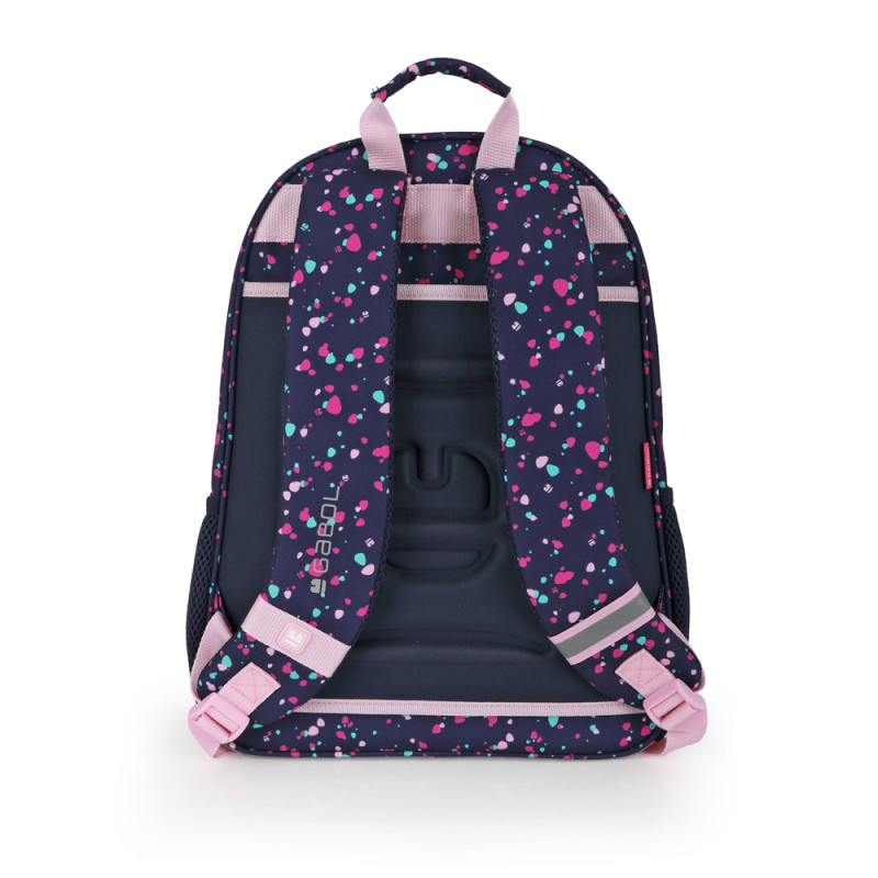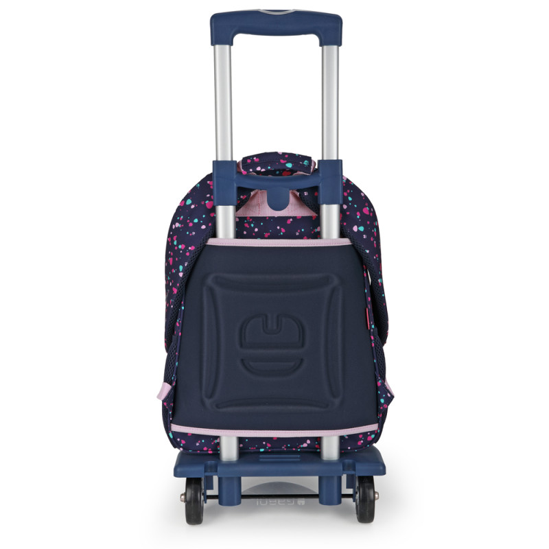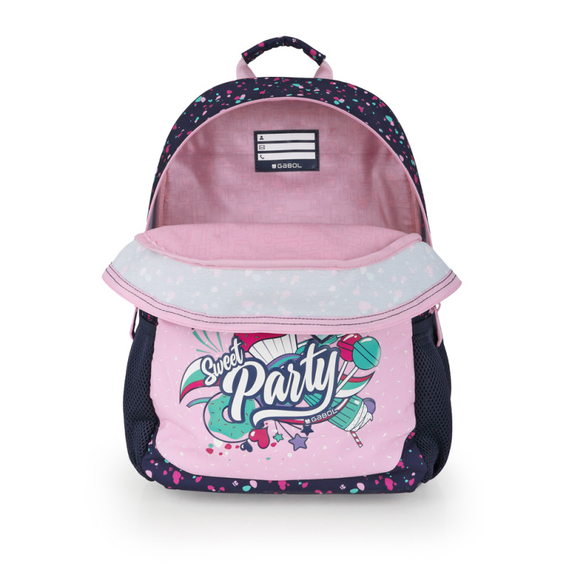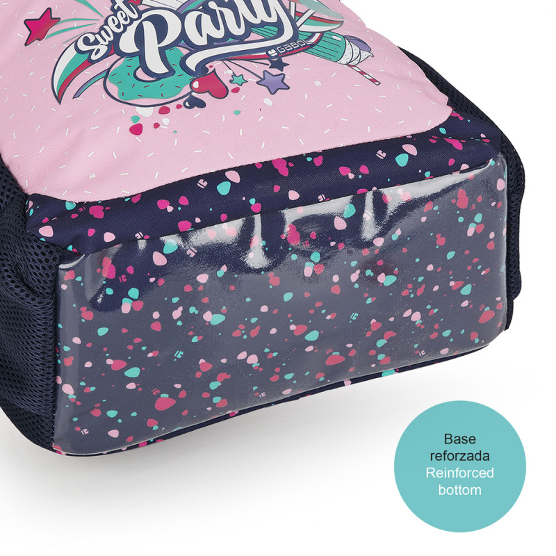 Mochila adaptable a carro Gabol PARTY. Mochila adaptable a carro con material resistente al agua. Su espalda termoformada ofrece, a su vez, comodidad y una protección ideal para amortiguar los objetos del interior. Base acolchada con protector de plástico de refuerzo. Hombreras acolchadas y reforzadas. Incluye identificador y organizador en su interior. Bolsillo en el lateral exterior. Fabricada con material libre de PVC, con un tejido de alta densidad y mayor calidad. Medidas: 31x41x15 cm