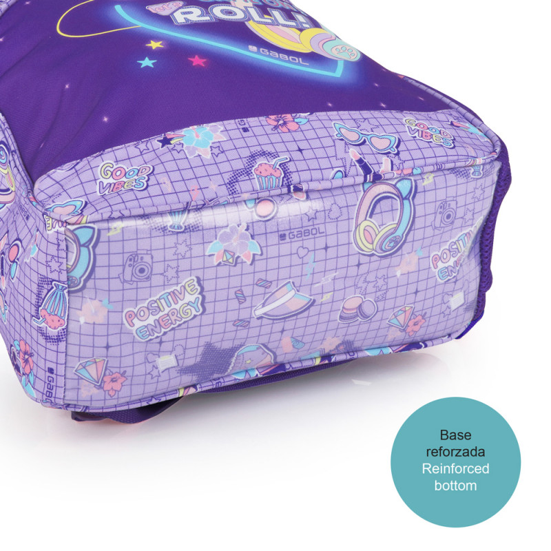 Mochila adaptable a carro. Gabol FUNNY. Mochila adaptable a carro con material resistente al agua. Su espalda termoformada ofrece, a su vez, comodidad y una protección ideal para amortiguar los objetos del interior. Base acolchada con protector de plástico de refuerzo. Hombreras acolchadas y reforzadas. Incluye identificador y organizador en su interior. Bolsillo en el lateral exterior. Fabricada con material libre de PVC, con un tejido de alta densidad y mayor calidad. Medidas: 30x40x12 cm