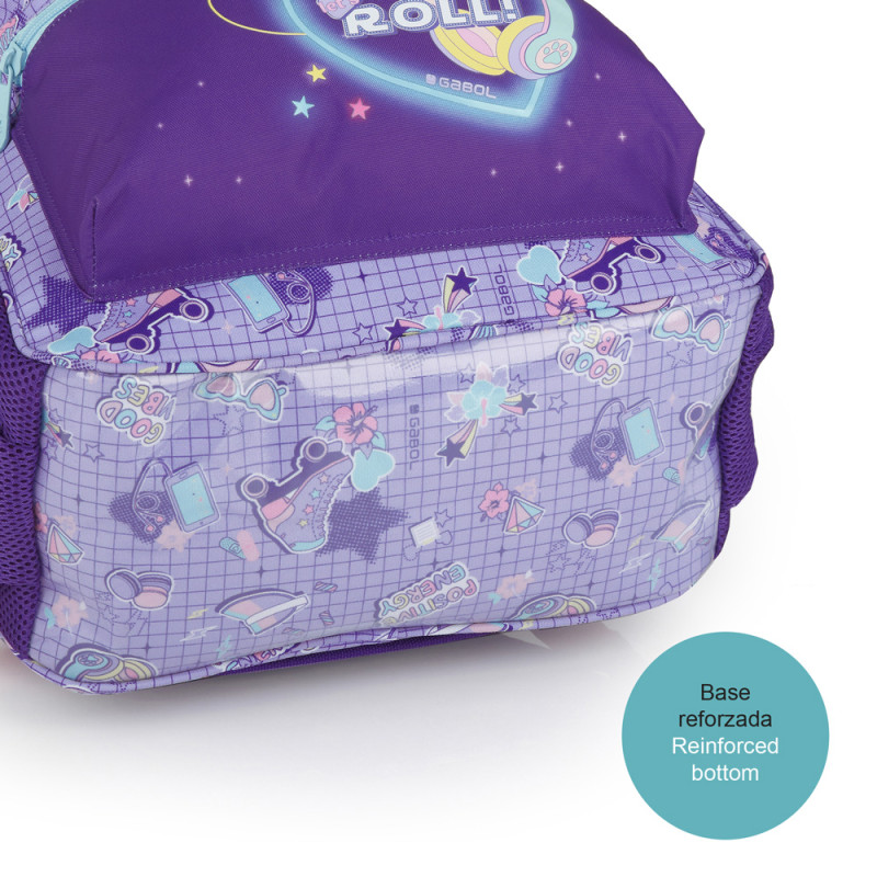 Mochila adaptable a carro. Gabol FUNNY. Mochila adaptable a carro con 2 compartimentos, de material resistente al agua. Su espalda termoformada ofrece, a su vez, comodidad y una protección ideal para amortiguar los objetos del interior. Base acolchada con protector de plástico de refuerzo. Hombreras acolchadas y reforzadas. Incluye identificador y organizador en su interior. Bolsillo en el lateral exterior. Fabricada con material libre de PVC, con un tejido de alta densidad y mayor calidad. Medidas: 32x44x15 cm